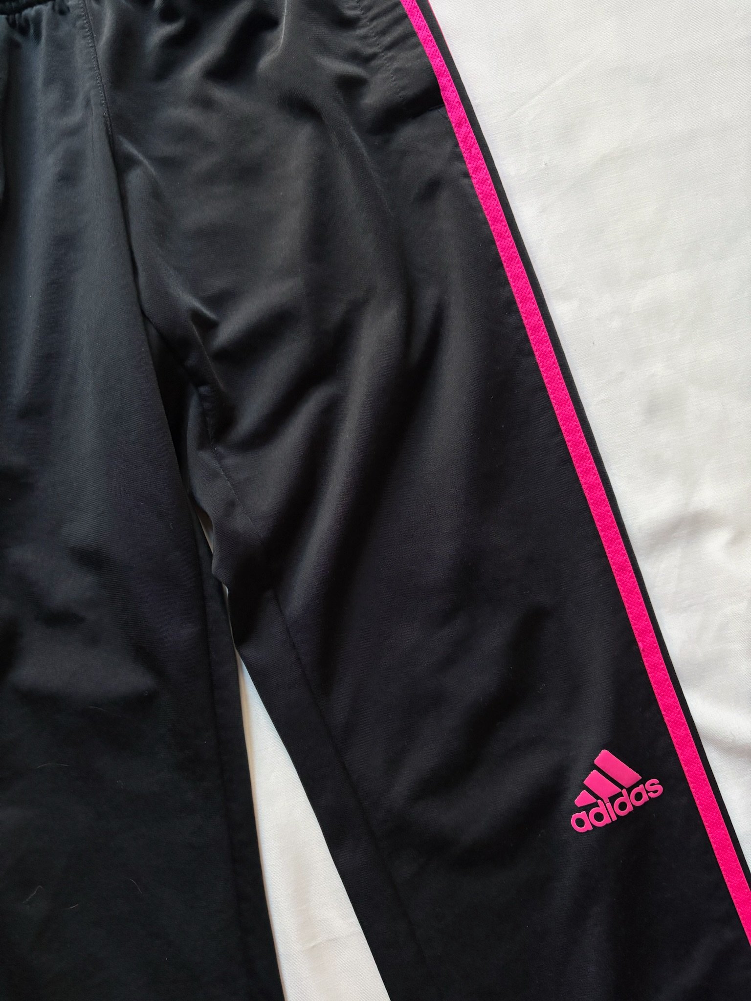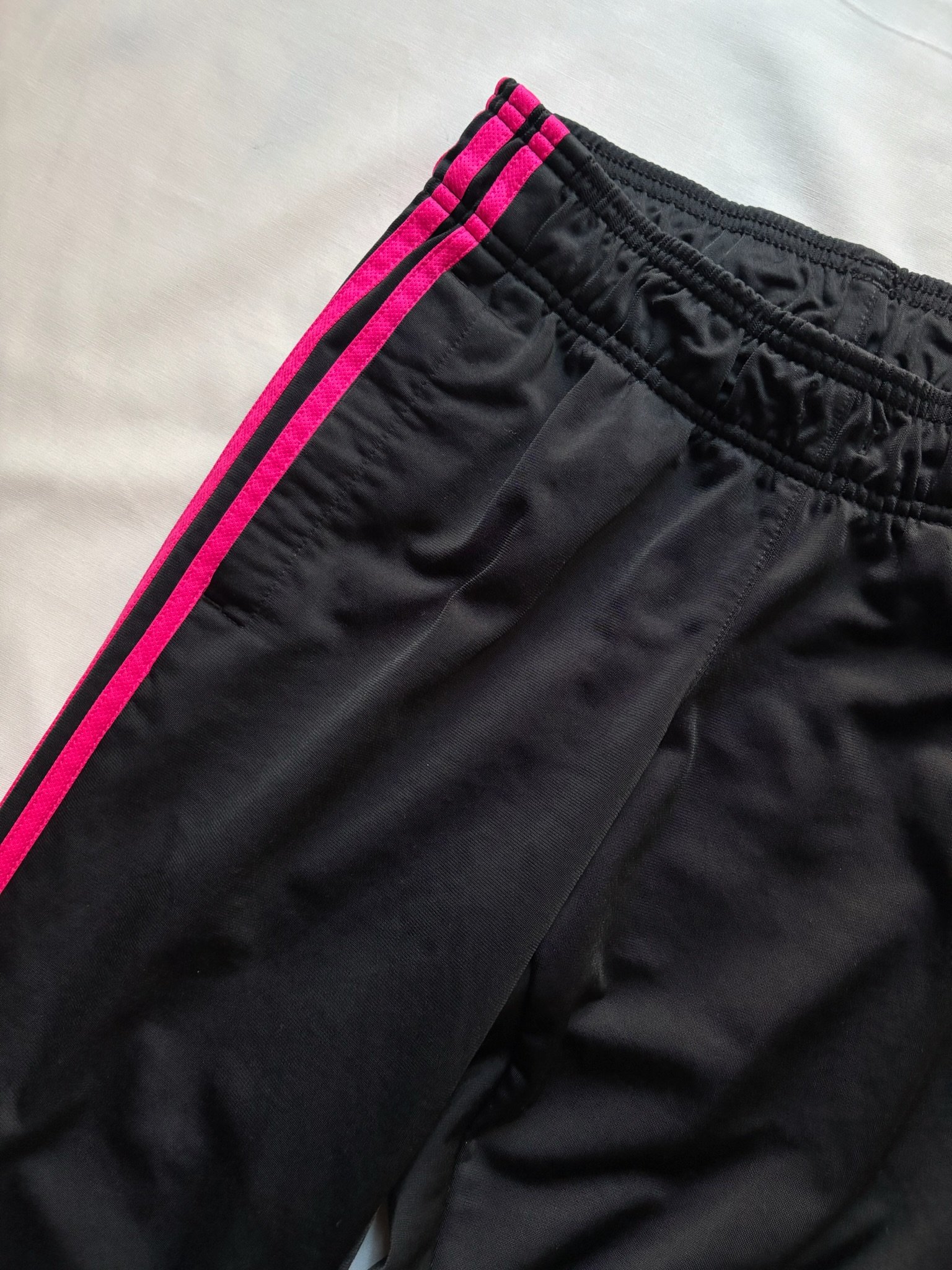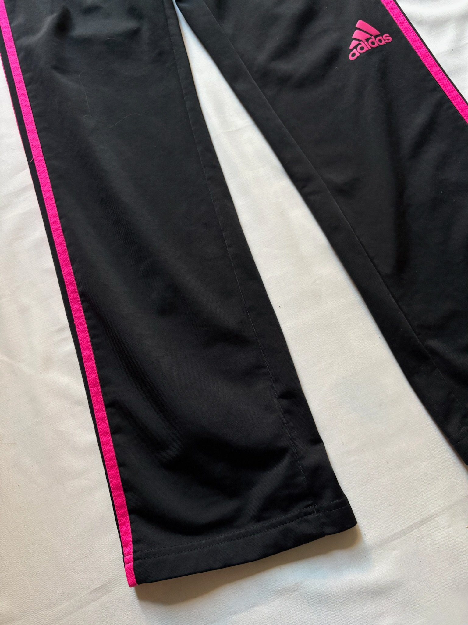 Adidas pants in black with pink stripes. Size XS, great condition.