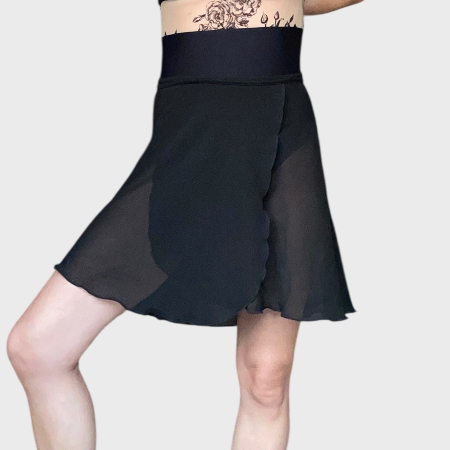 Black mid-length wrap skirt, brand unknown. One size, great condition.