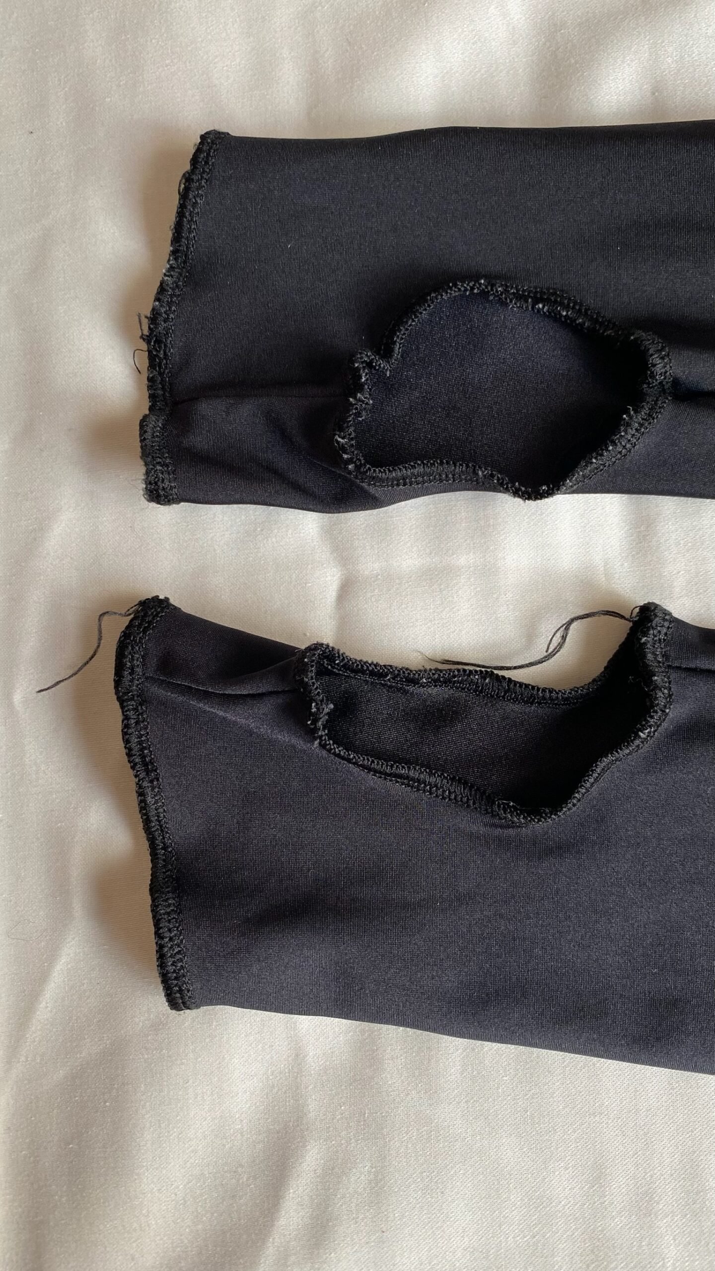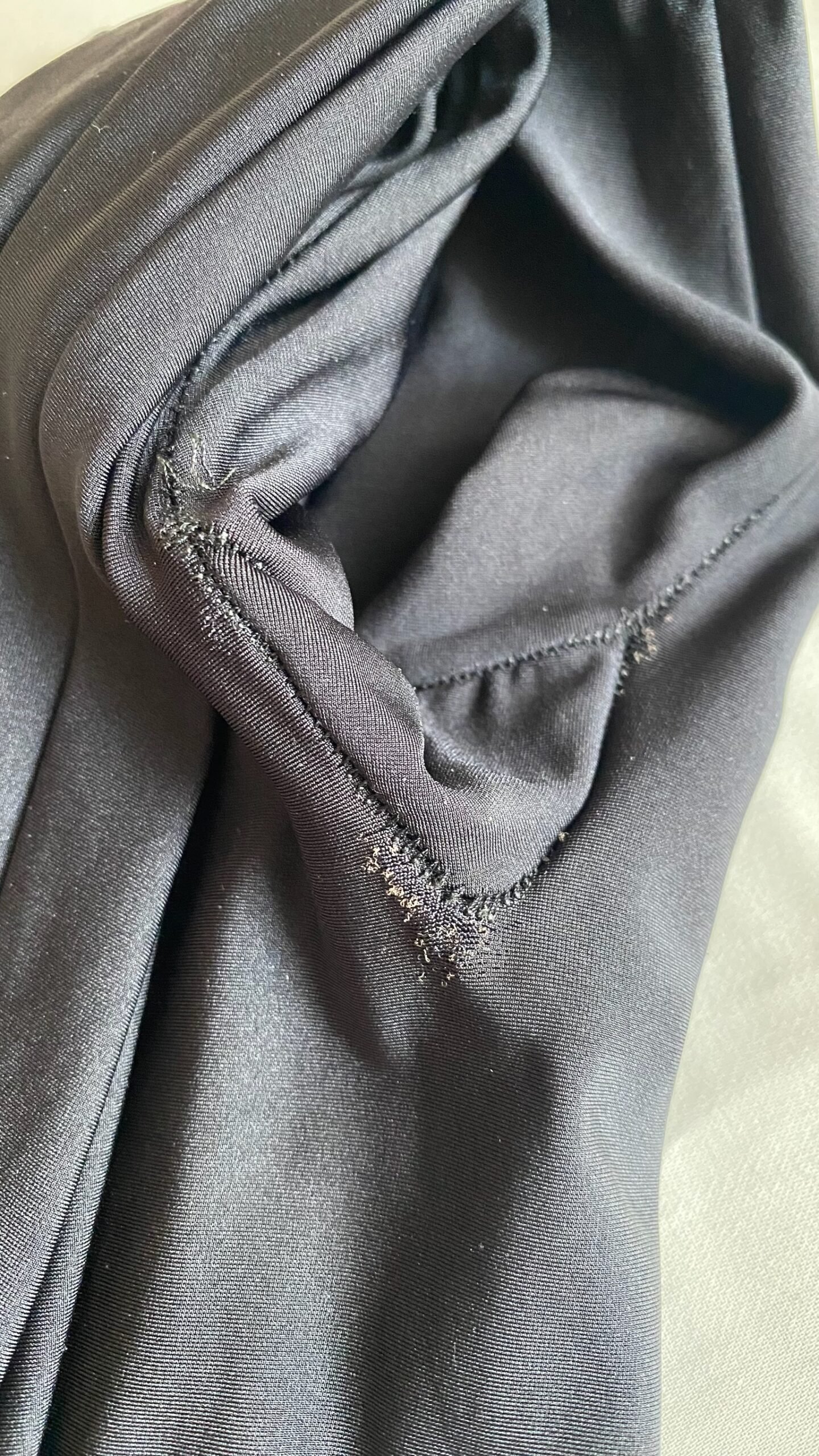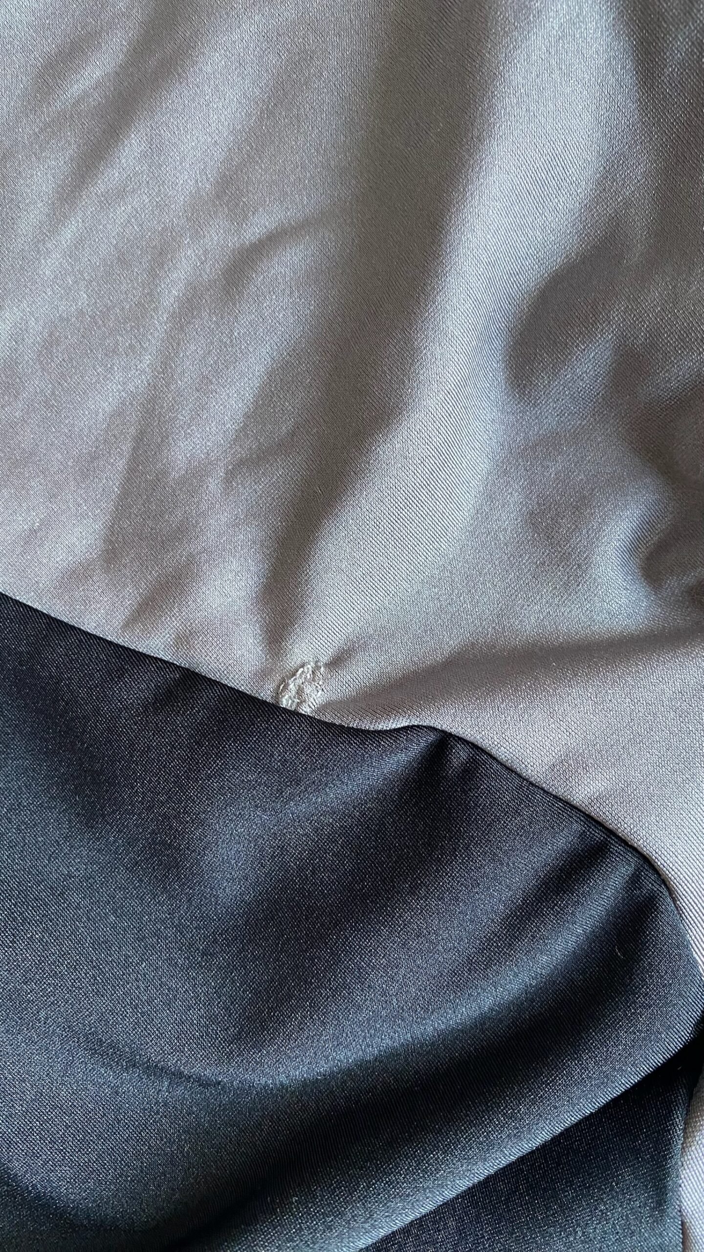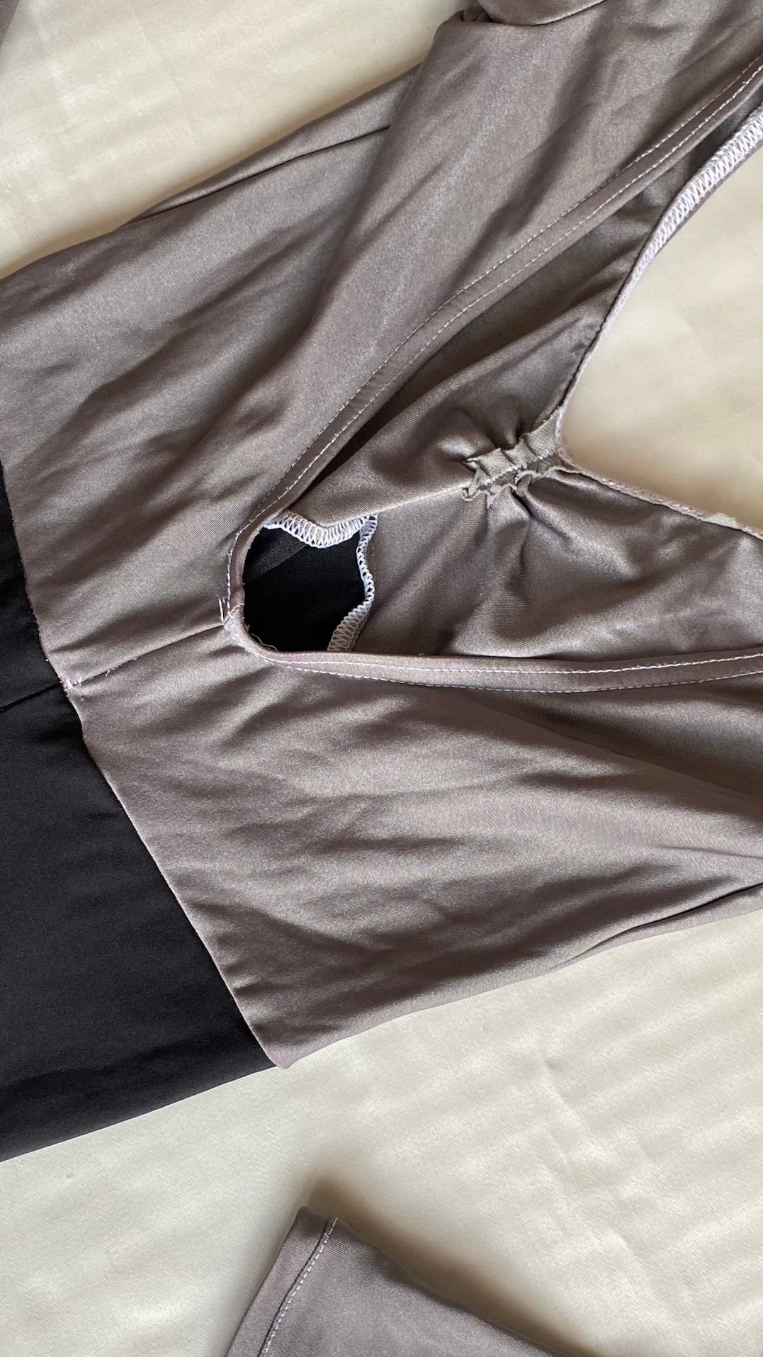 Black unitard with grey top and long sleeves. Size M, fair condition (see pictures).
