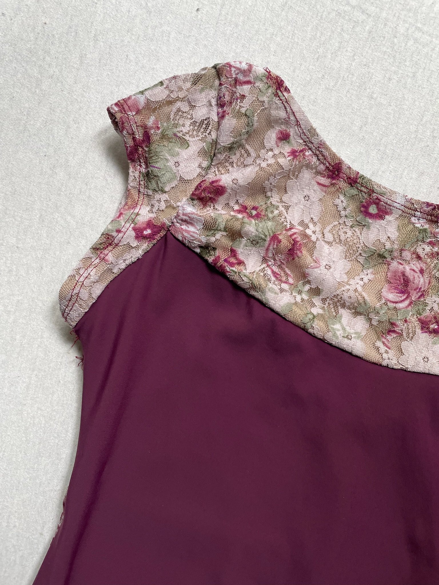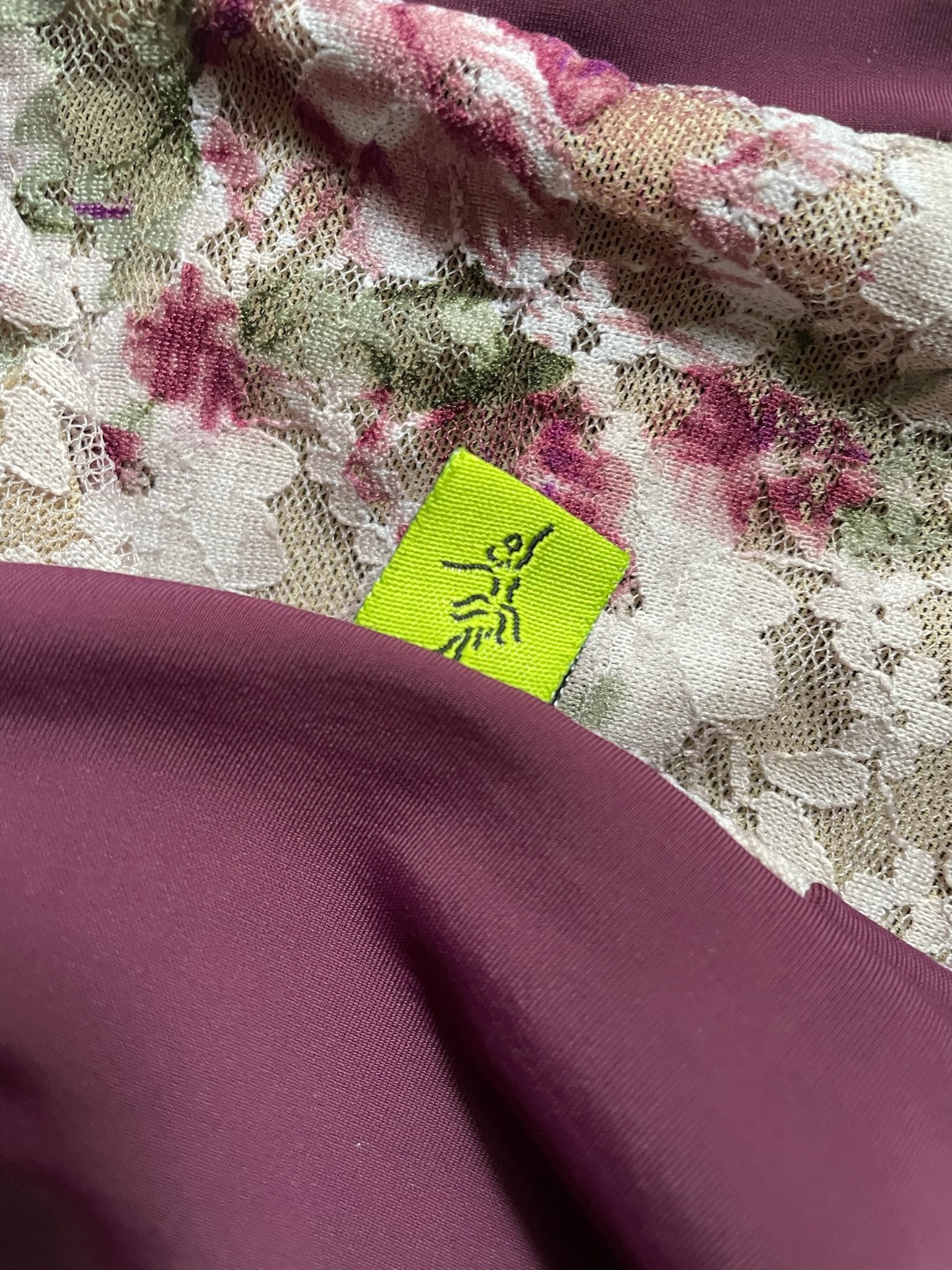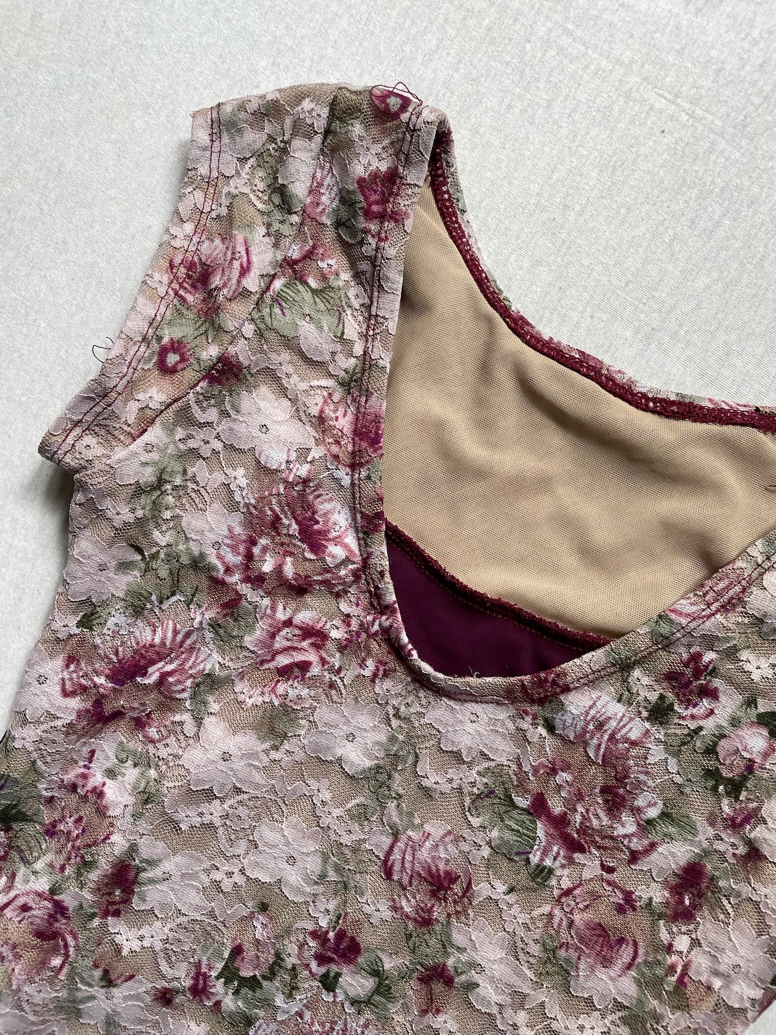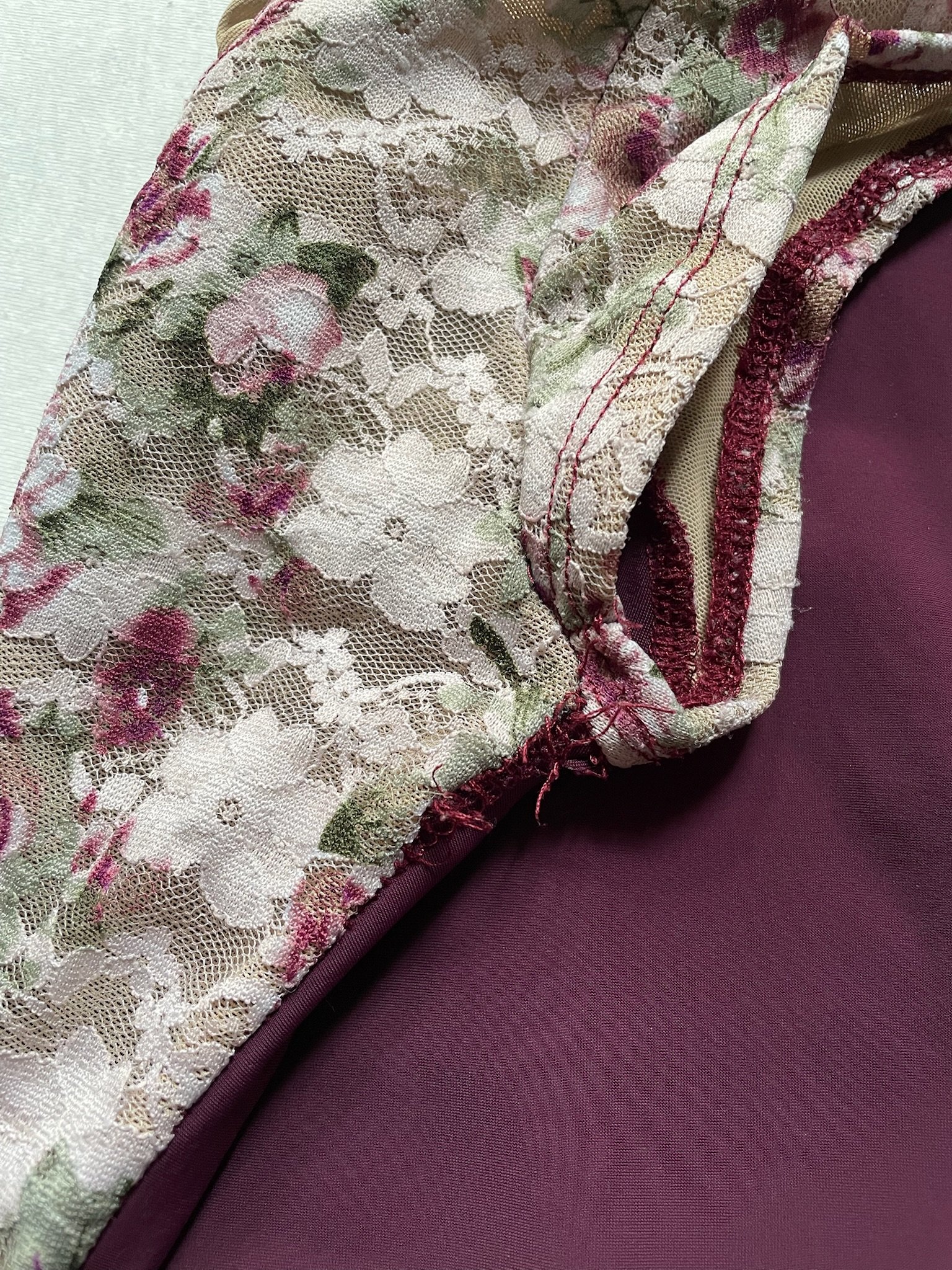 Burgundy leotard with lace back and cap sleeves. Size M, fair condition.
