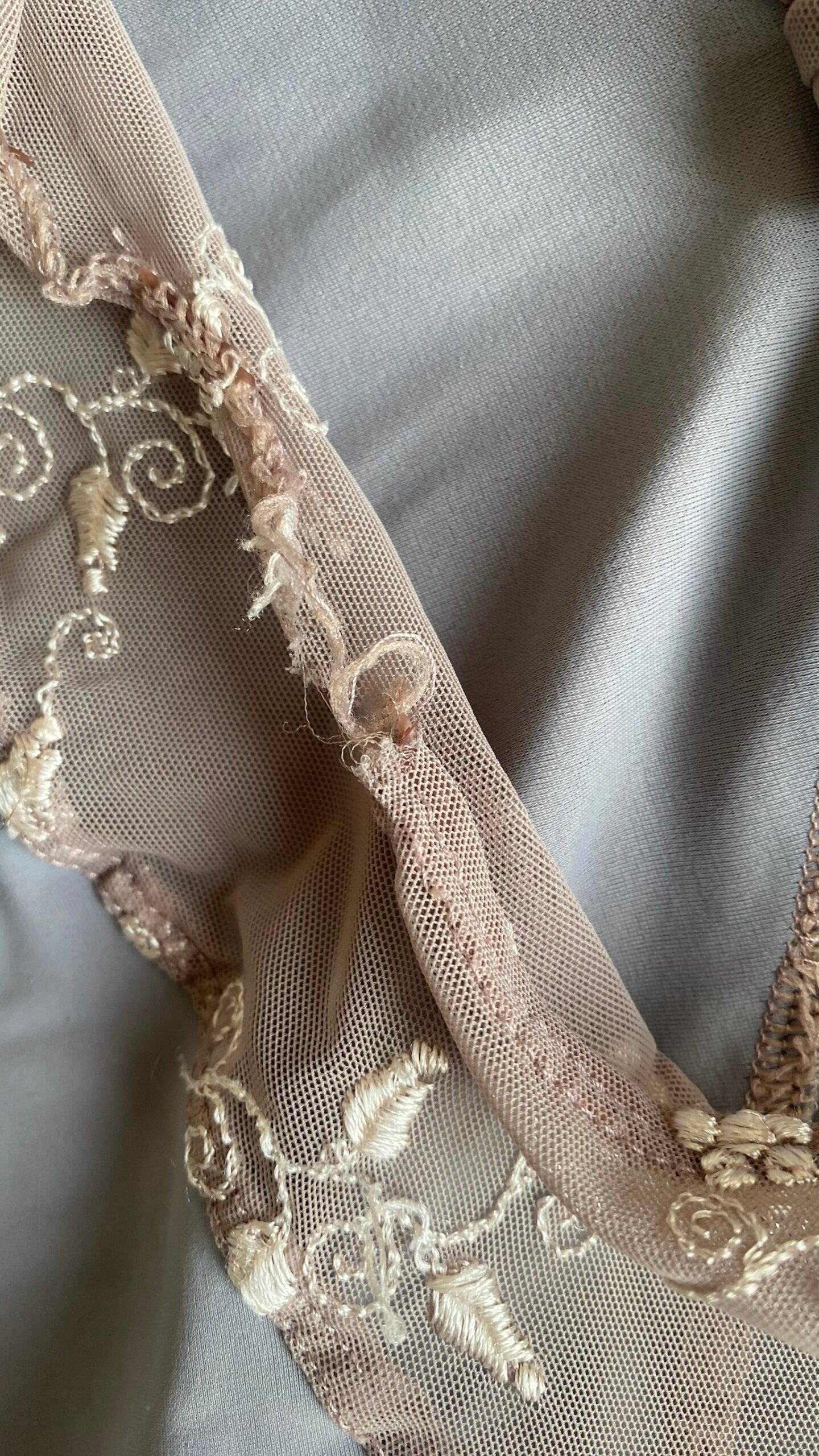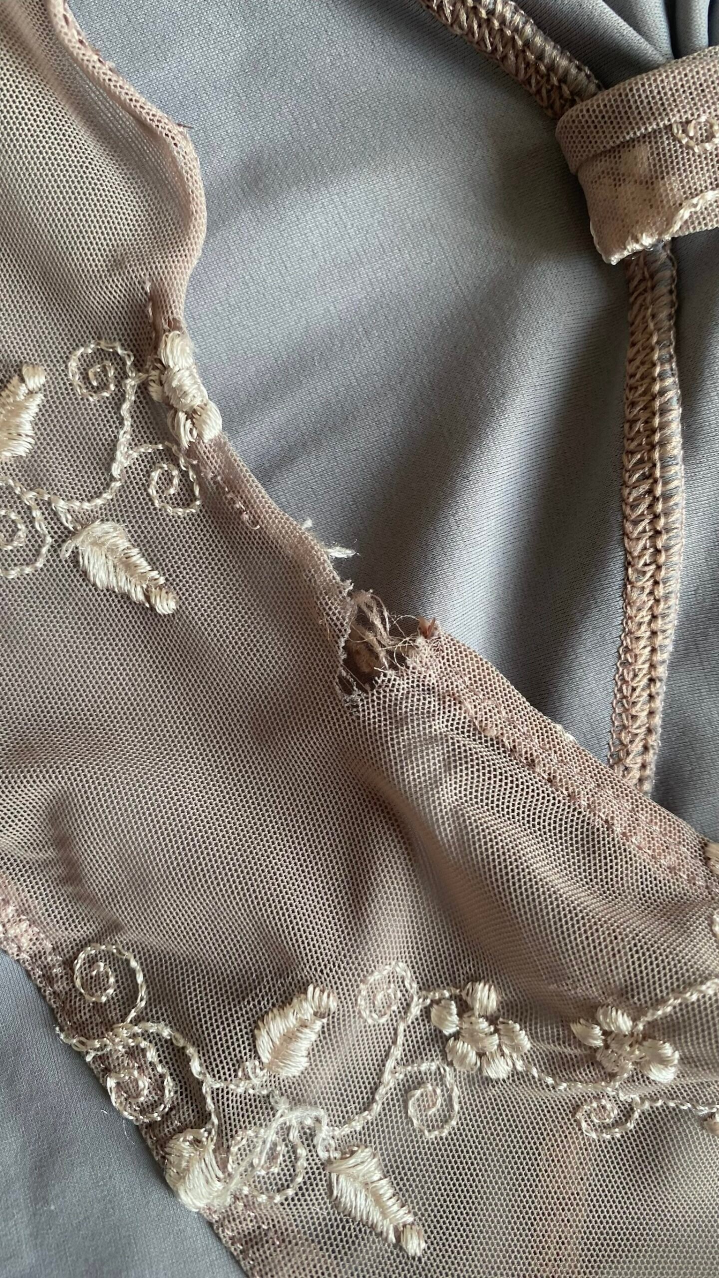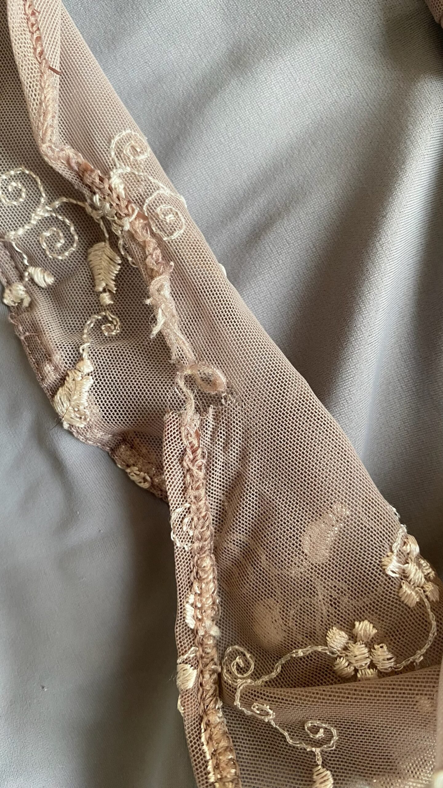 DellaLo’ Milano leotard in grey with embroidered mesh top. Size S, fair condition – the seam at the back is damaged (see pictures).