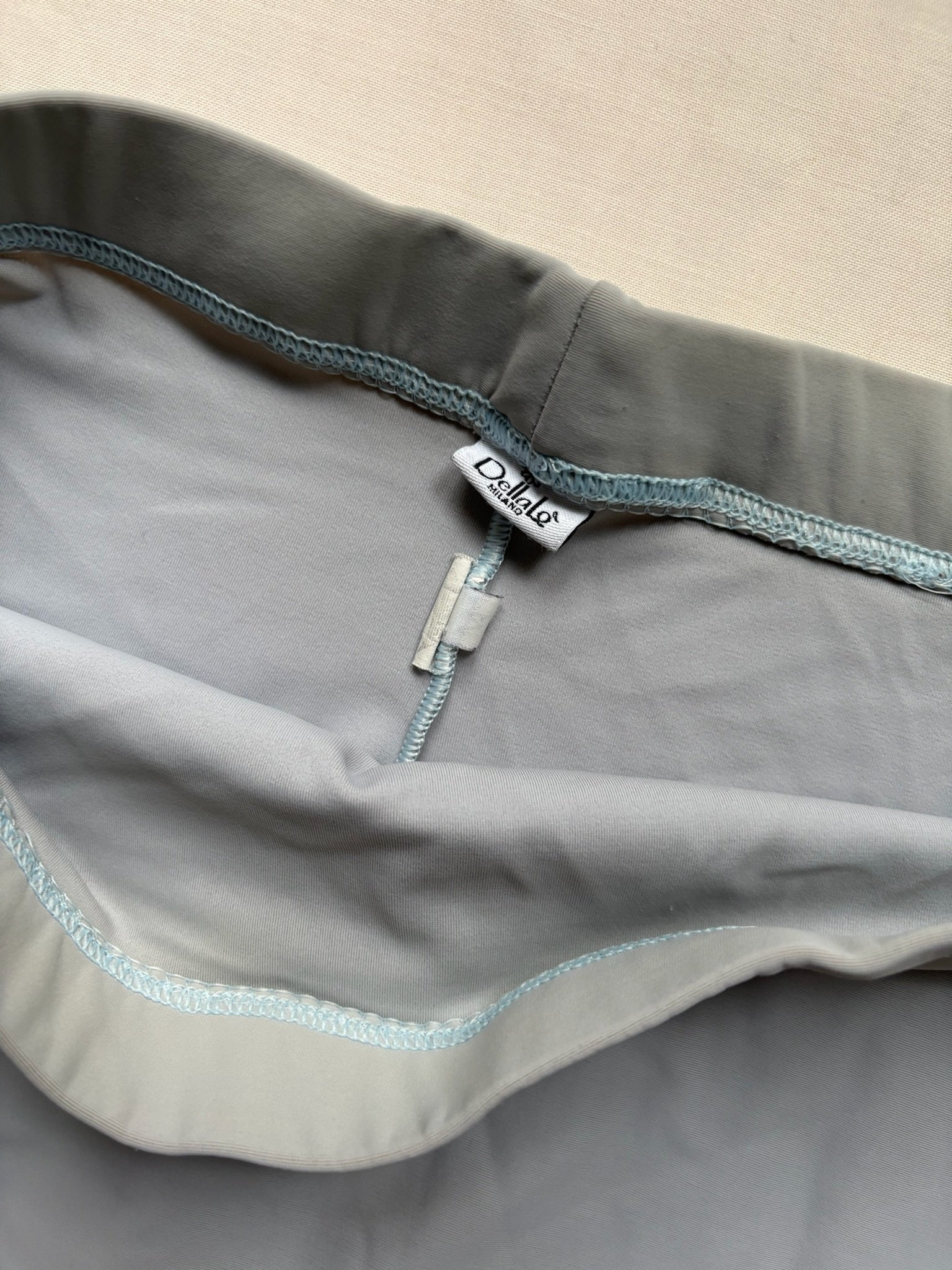 DellaLo’ Milano tights in light grey. Size M, fair condition – the waistband is slightly discolored and has slightly lost its stretchiness.