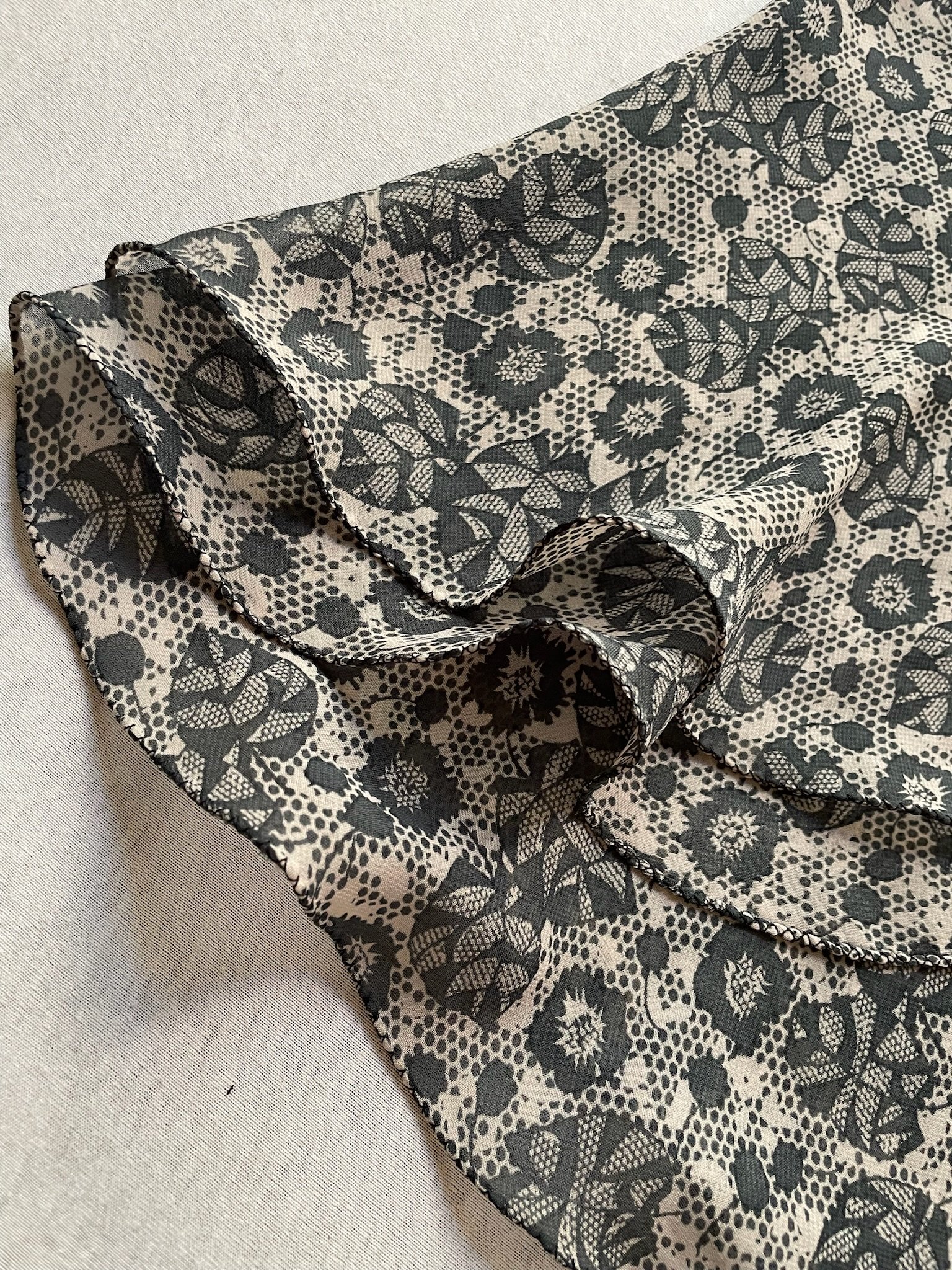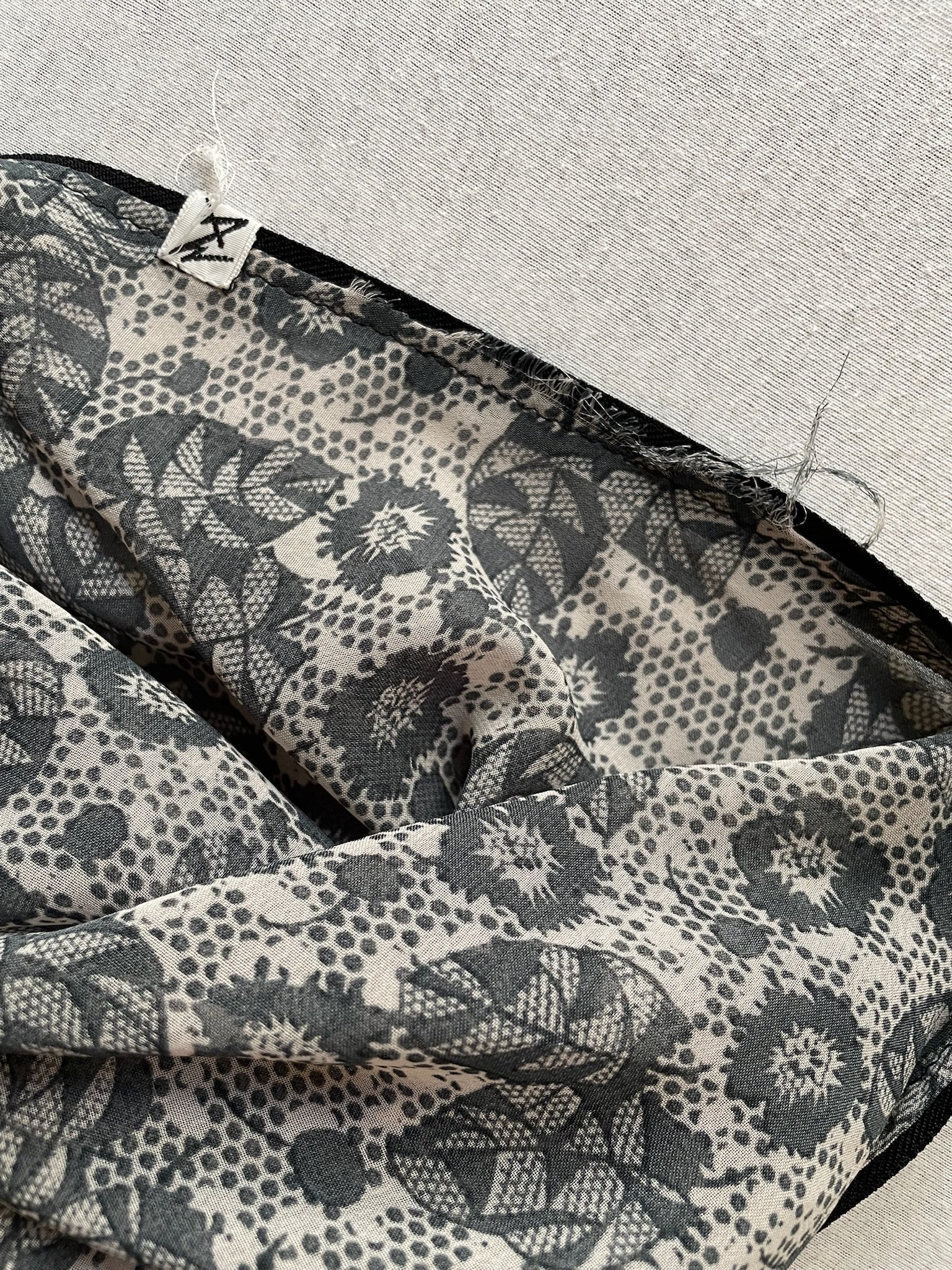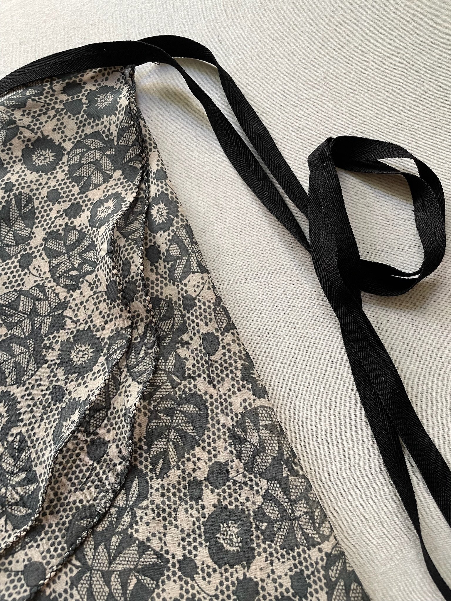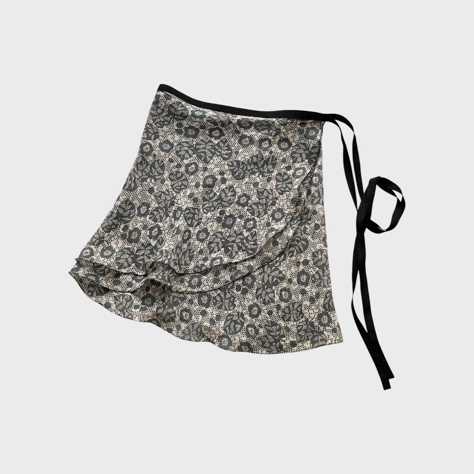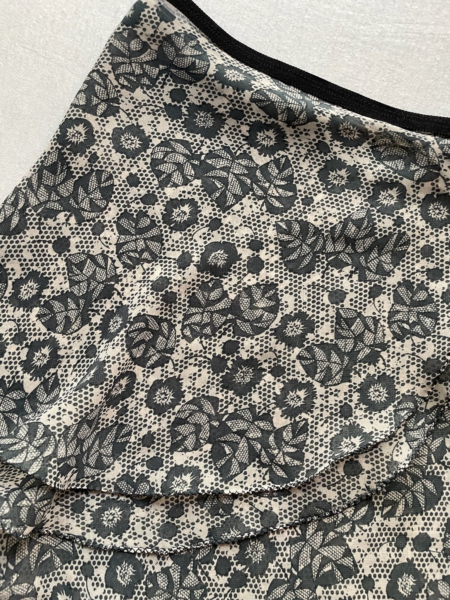 Designed by Alice short patterned wrap skirt. One size, fair condition – the fabric is slightly worn out by the waistband.