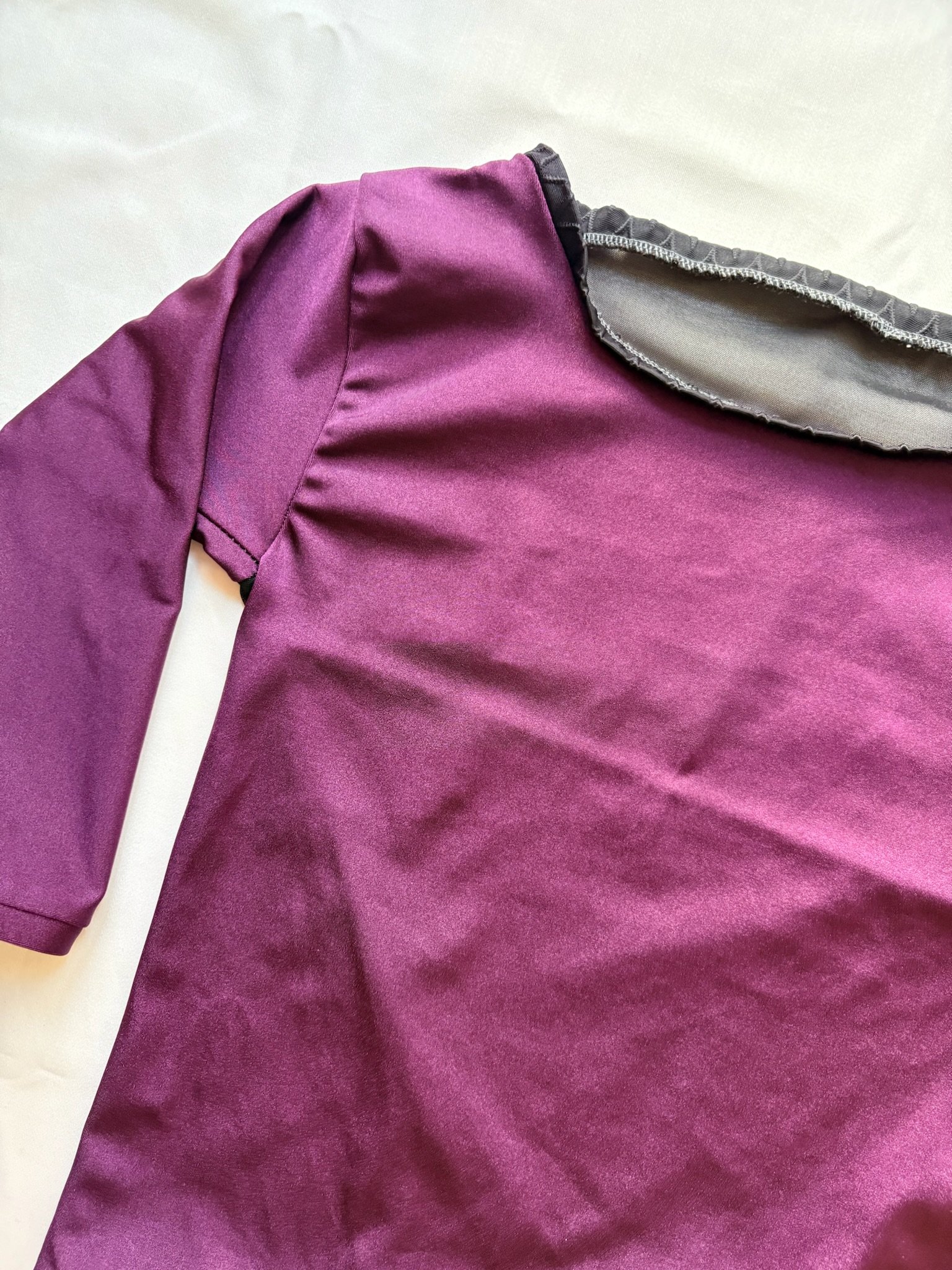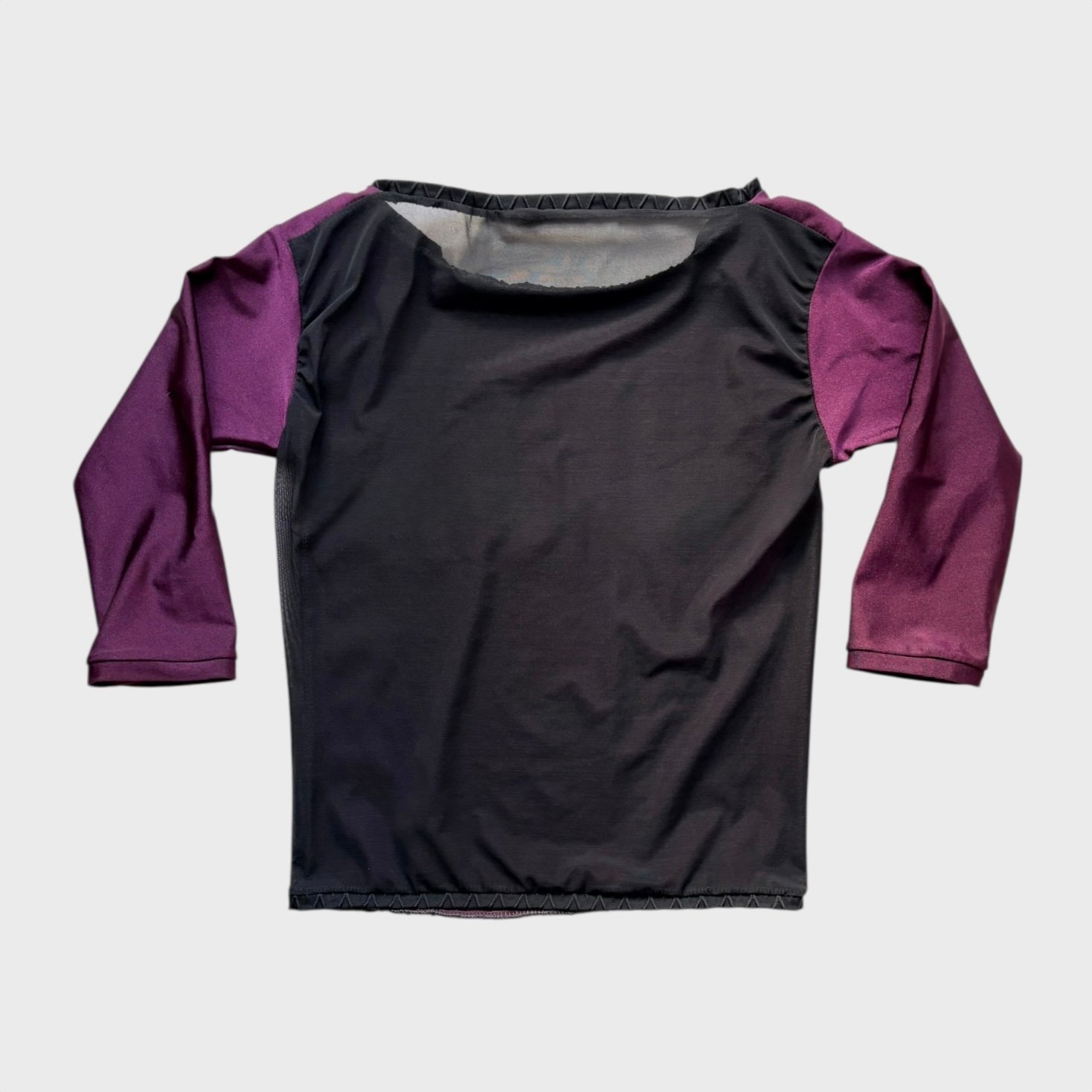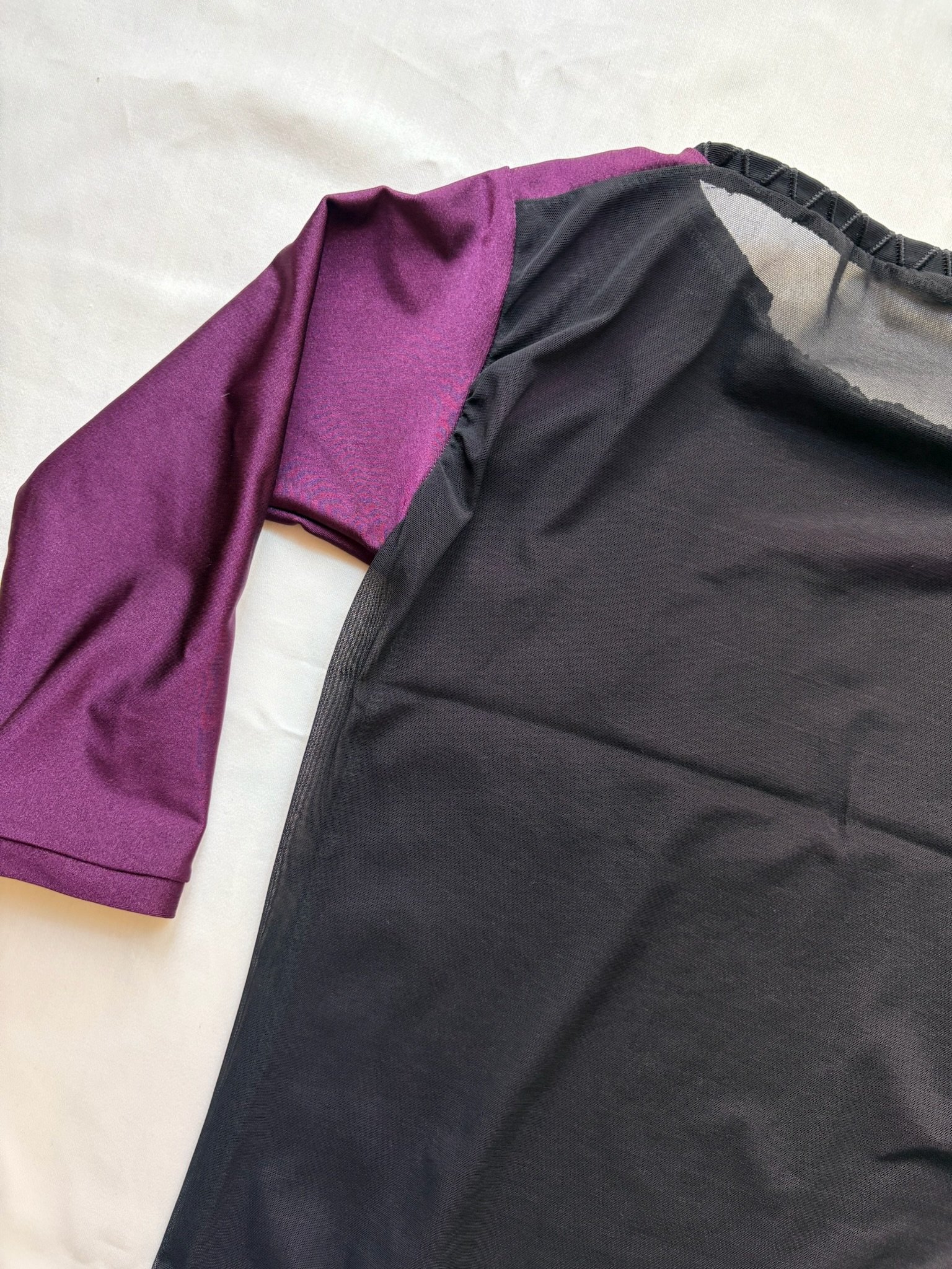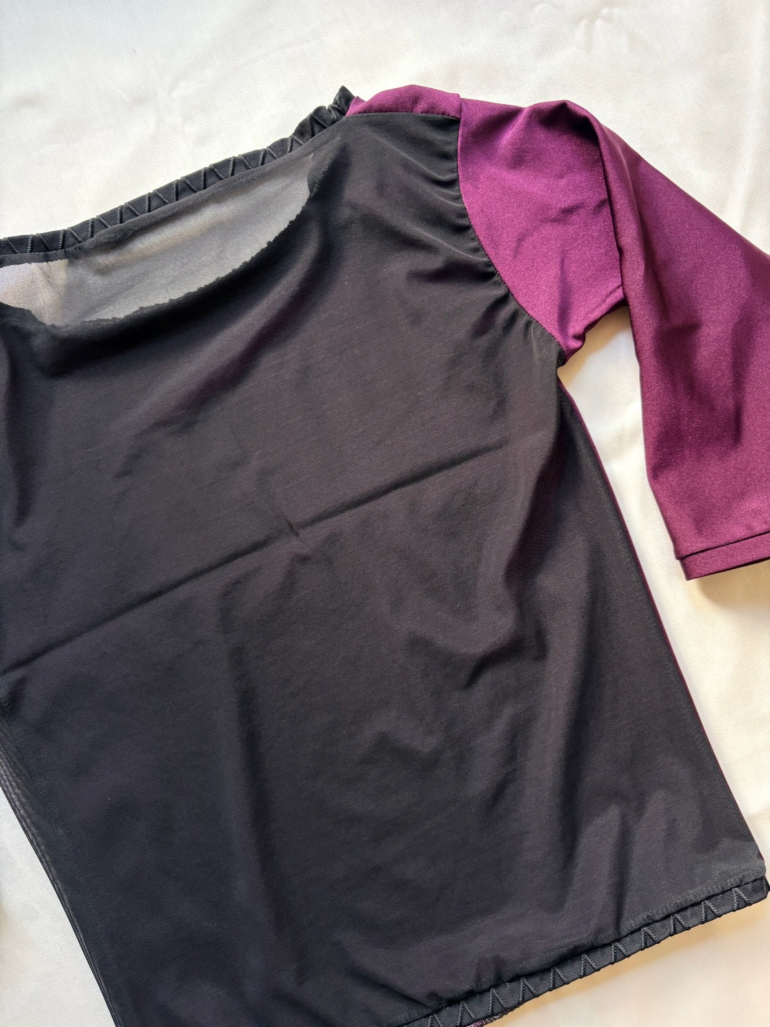Fukubi crop top in wine red with black mesh back and half sleeves. Size M, great condition.