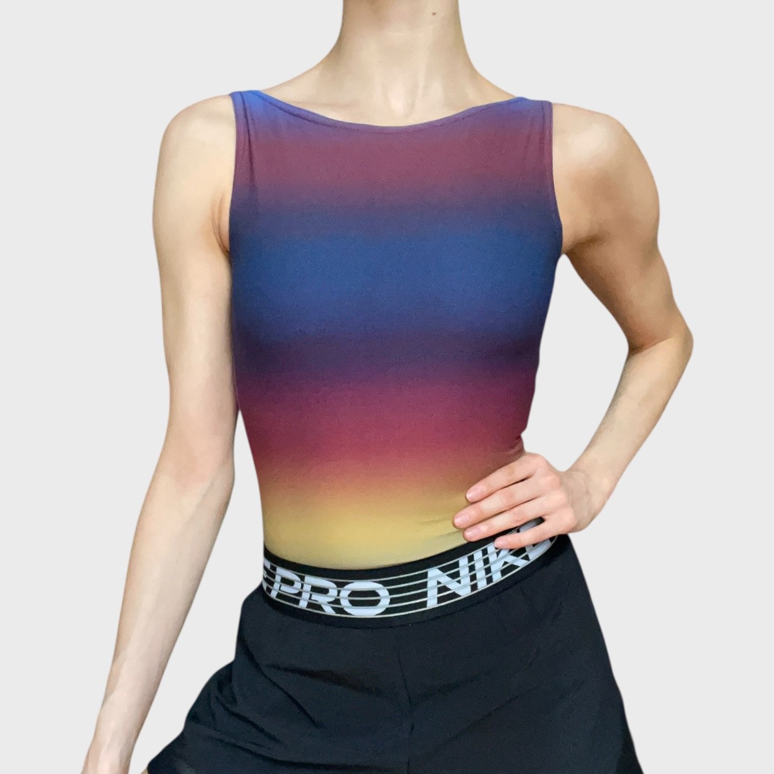 Grishko ombré leotard with boat neck and low back. Size S, great condition – small defect on the seam at the back.