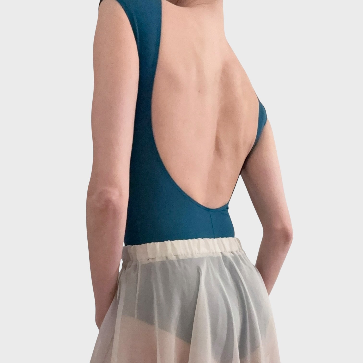 Intermezzo leotard in teal with cap sleeves and low back. Size S, great condition.