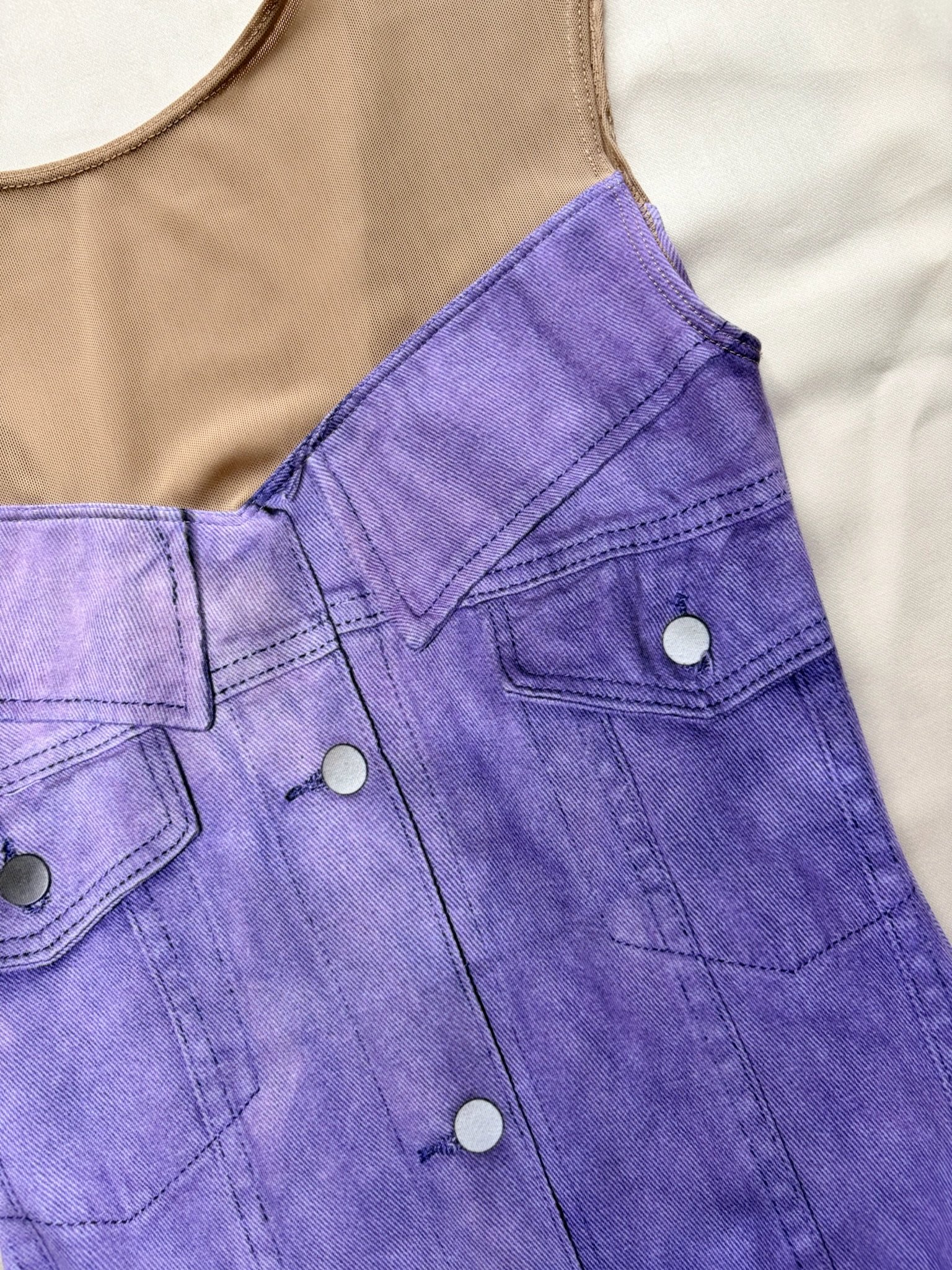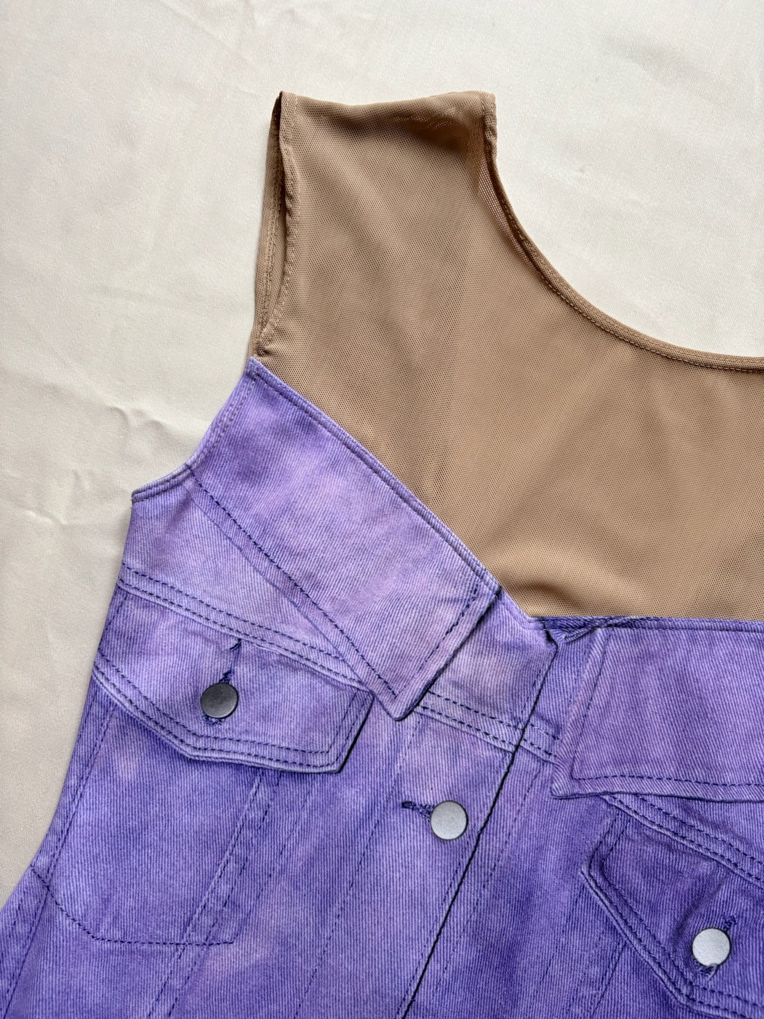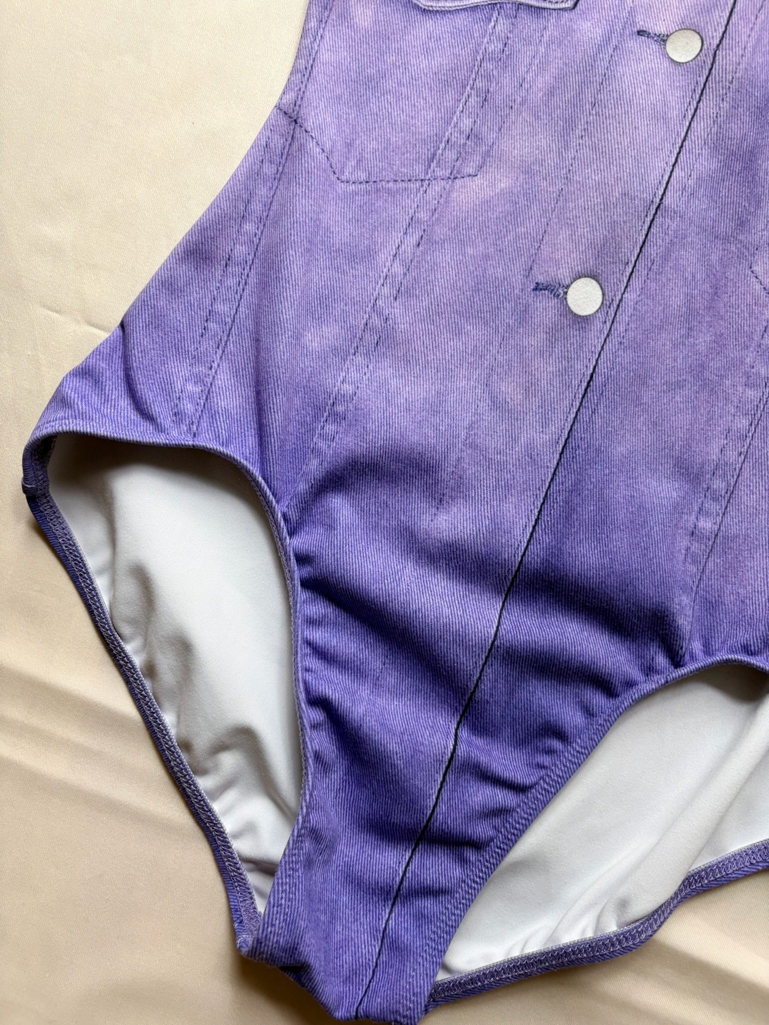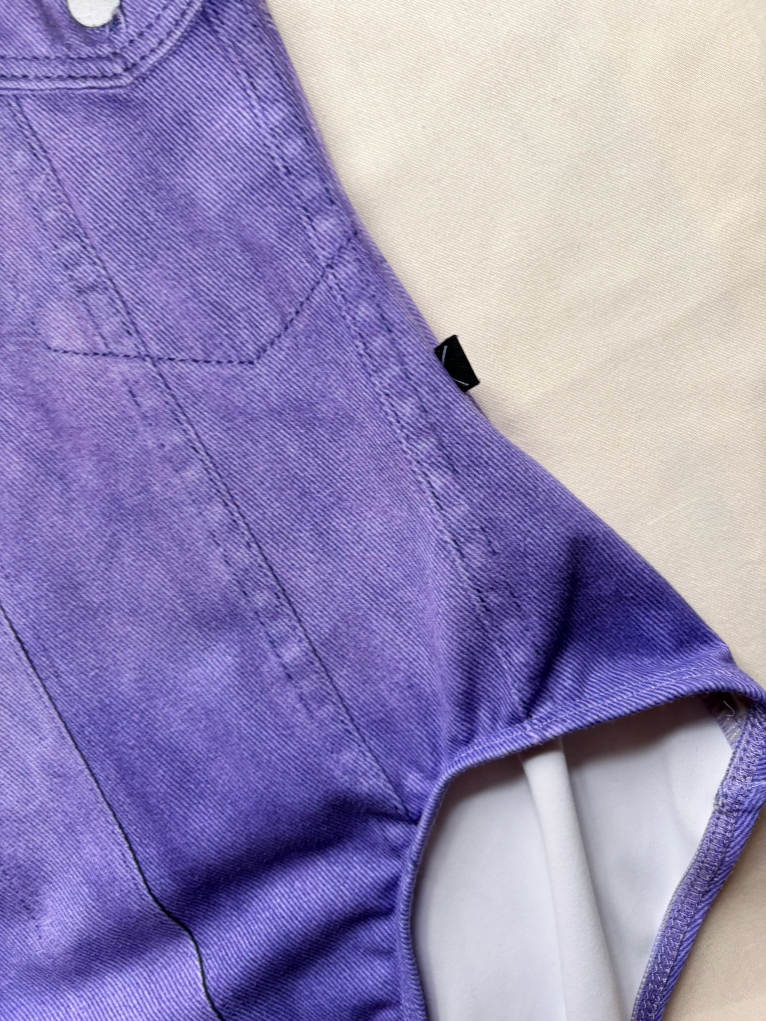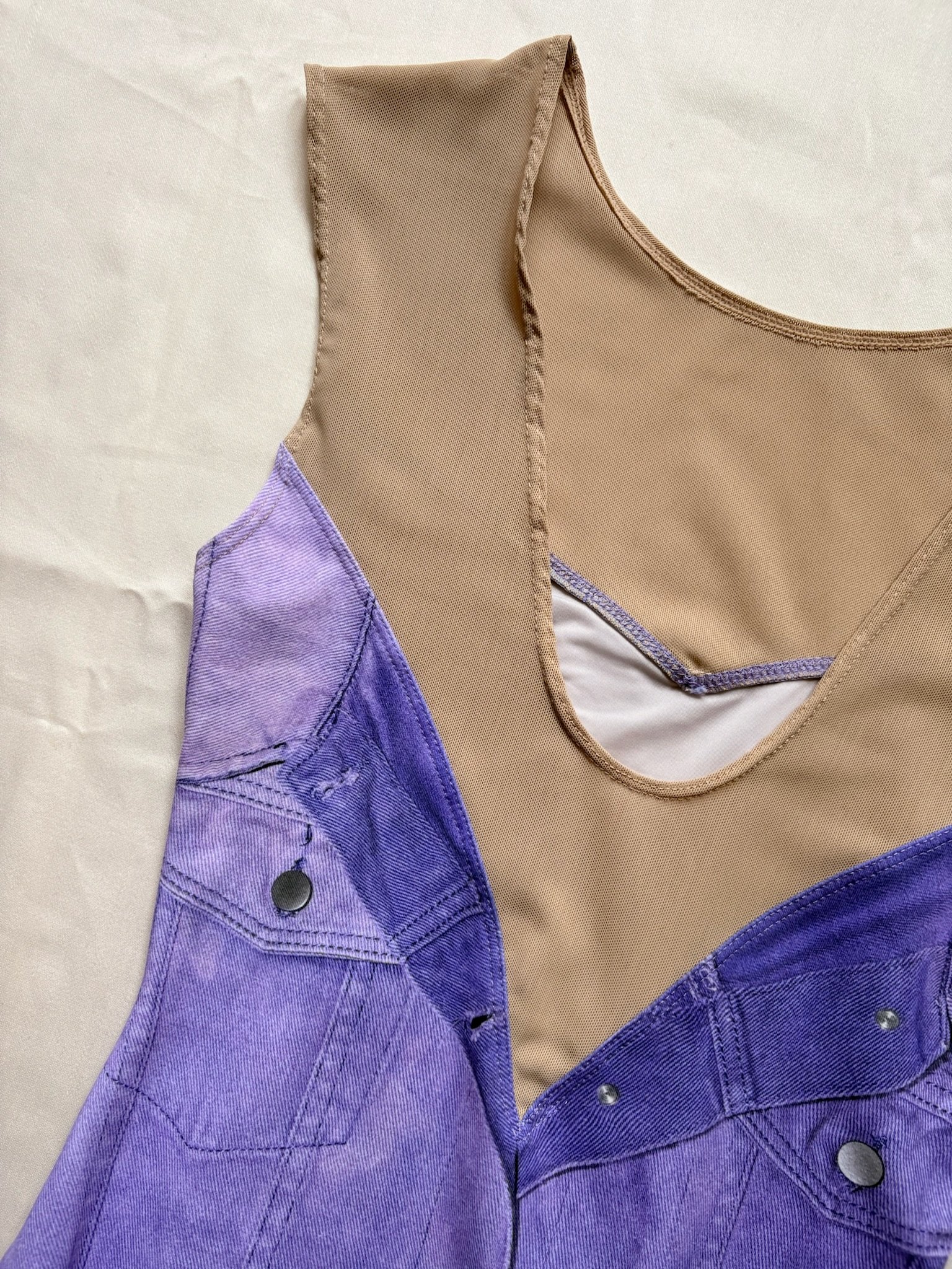 KeithLink leotard in purple denim print with nude mesh. Size S, great condition.