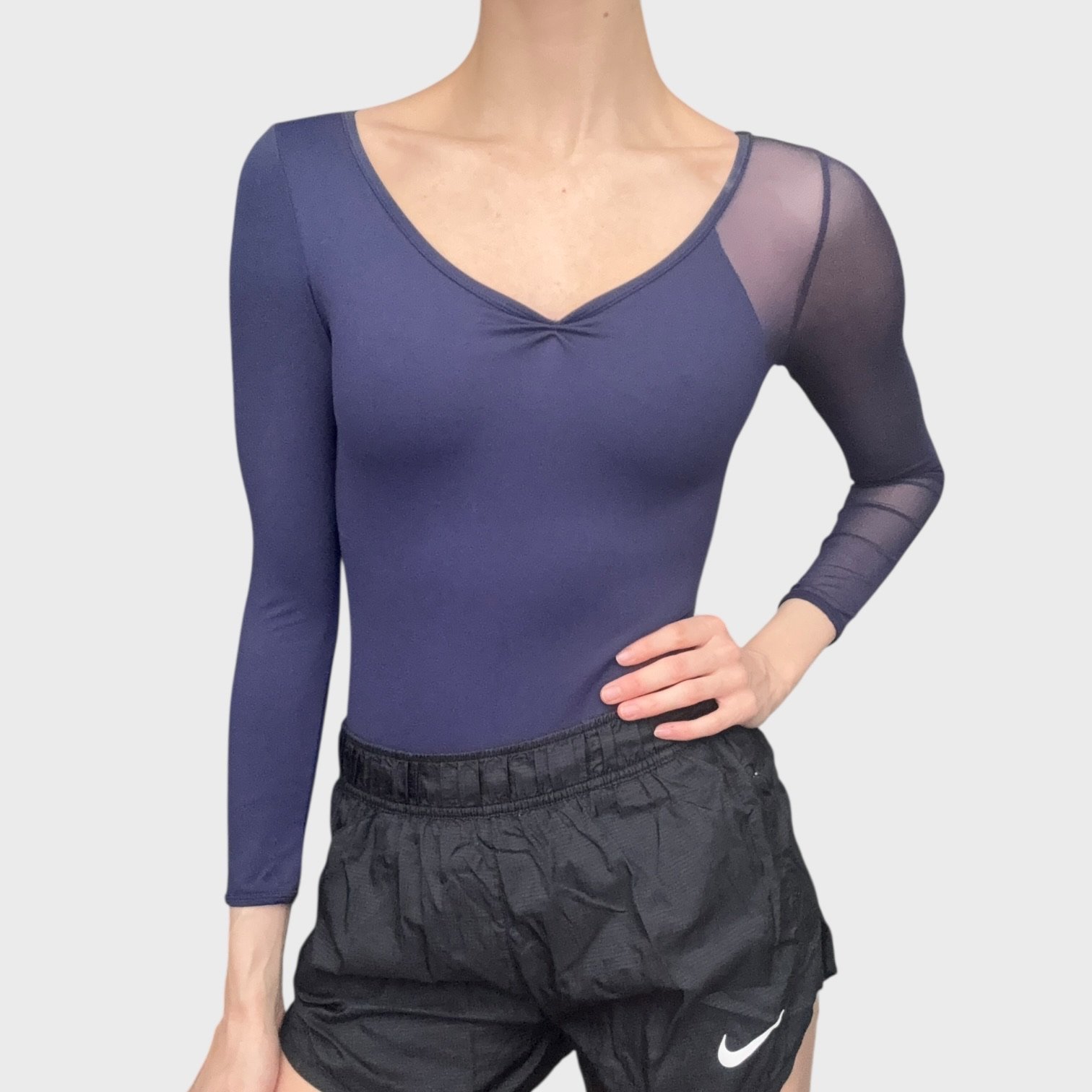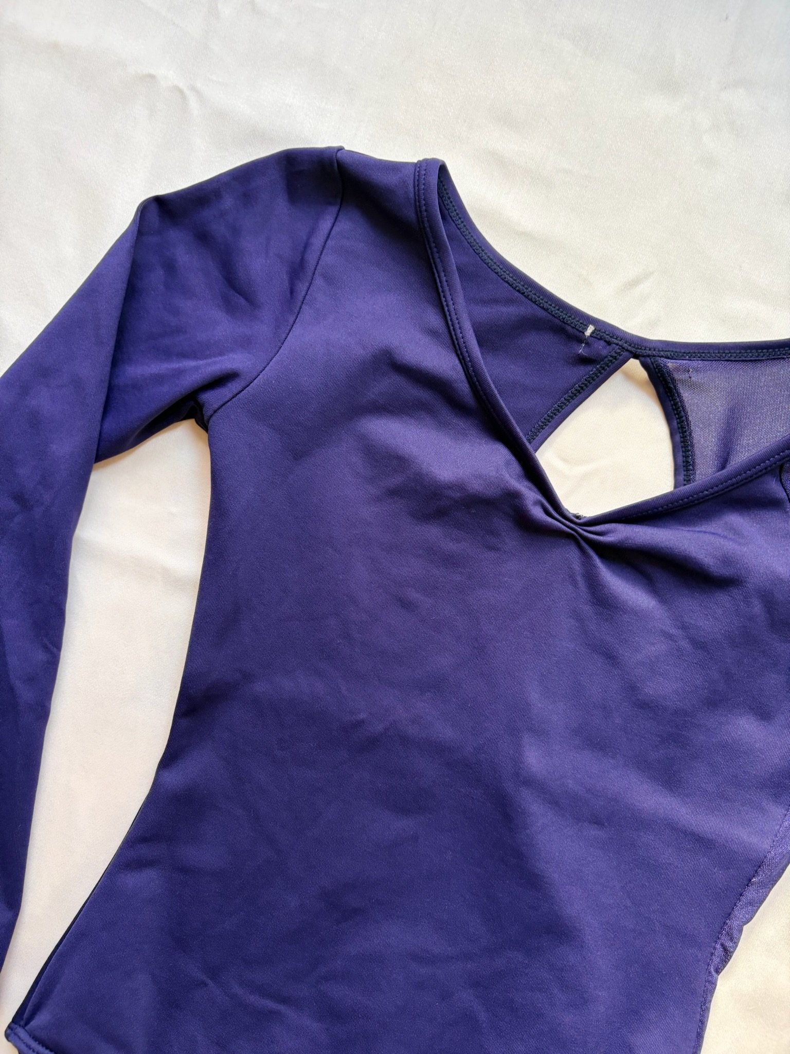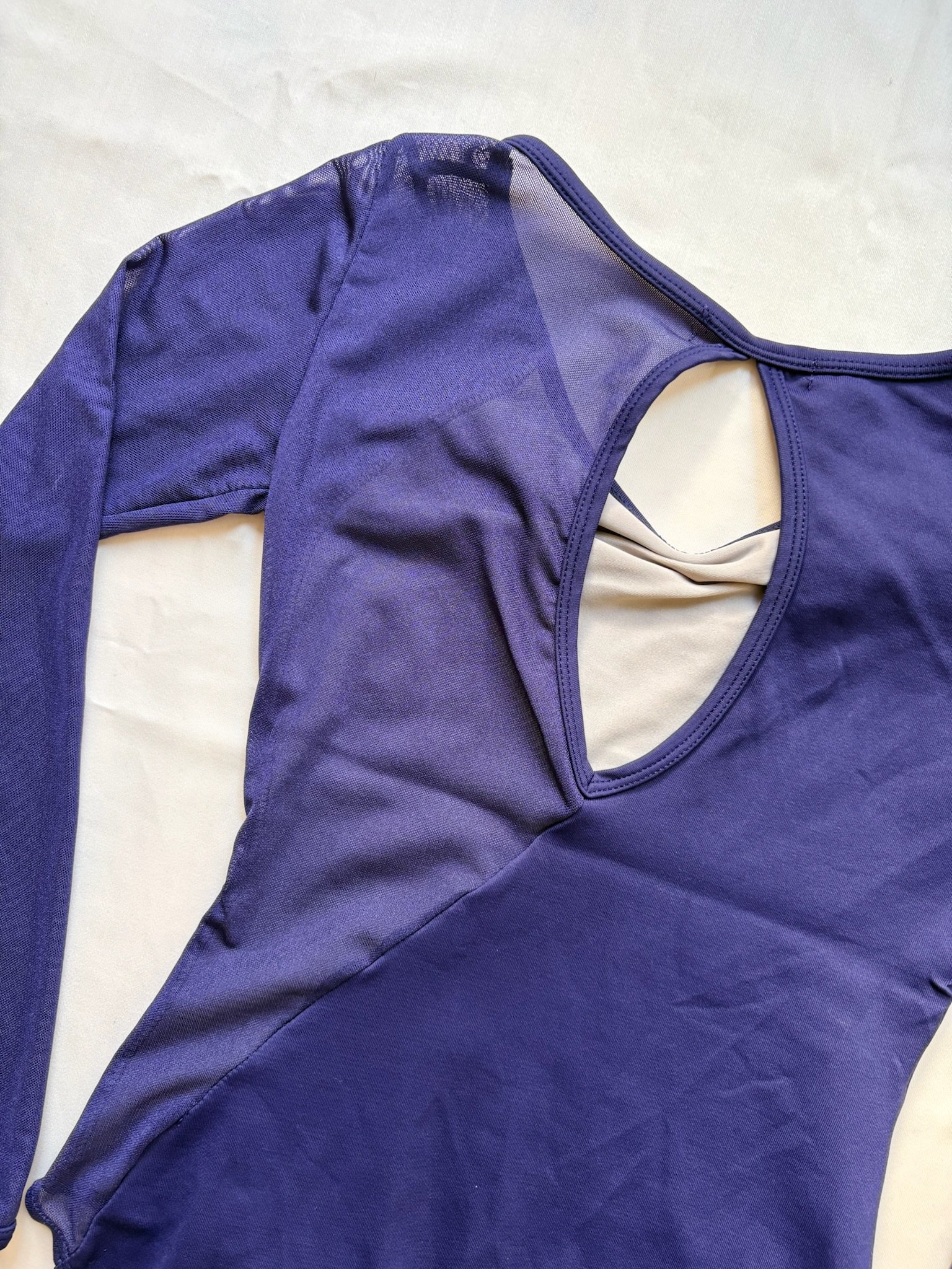 KH Martin leotard in dark blue with mesh side and long sleeves. Size M, great condition.