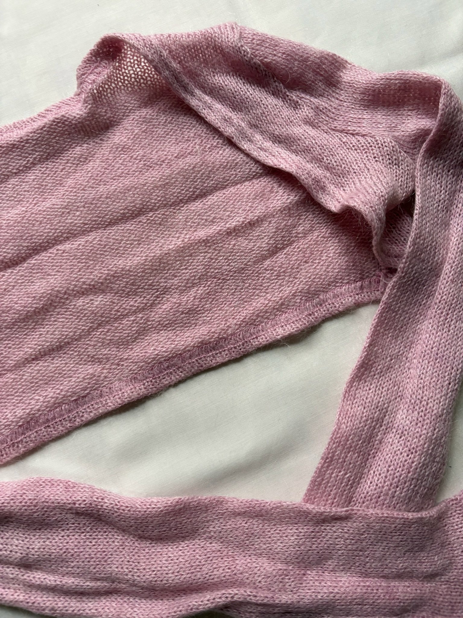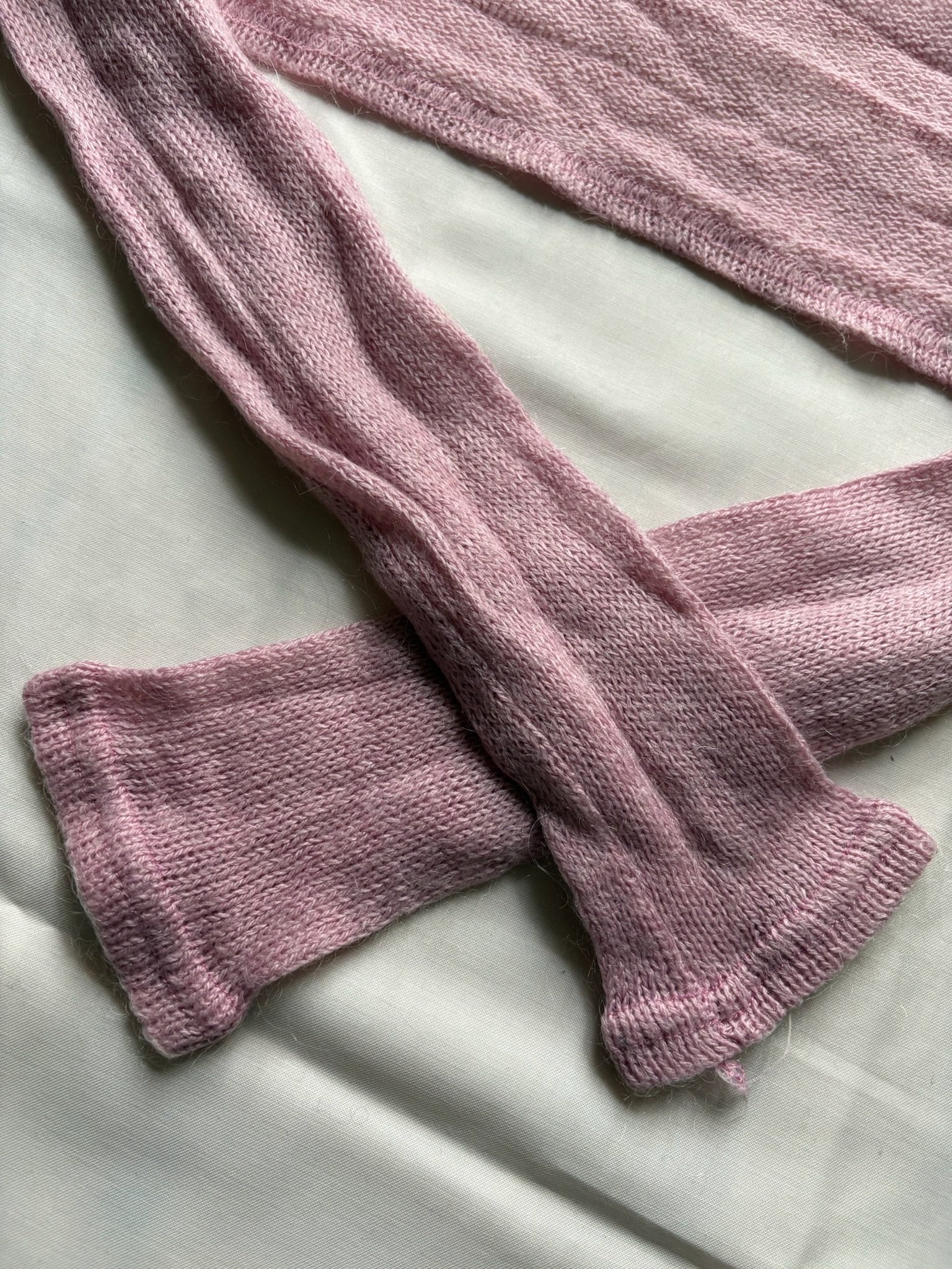 Hand knitted sleeves in pink. Size S/M, fair condition.