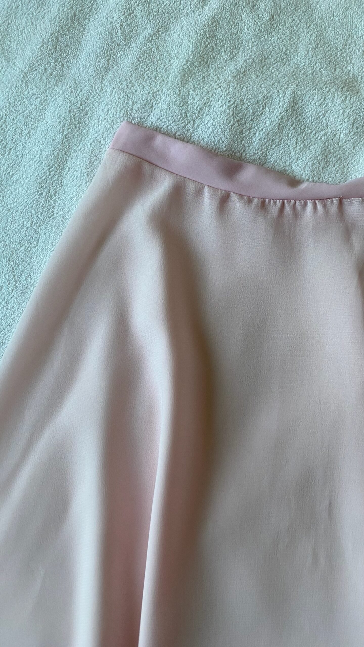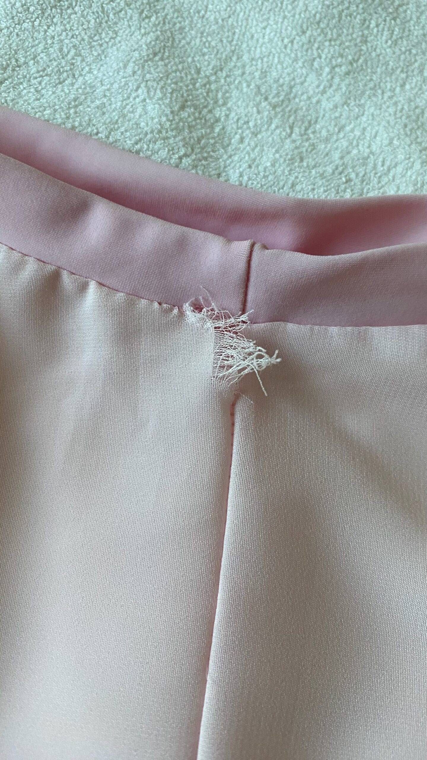 Light pink skirt, brand unknown. Size S, fair condition – defect by the seam at the back of the skirt.