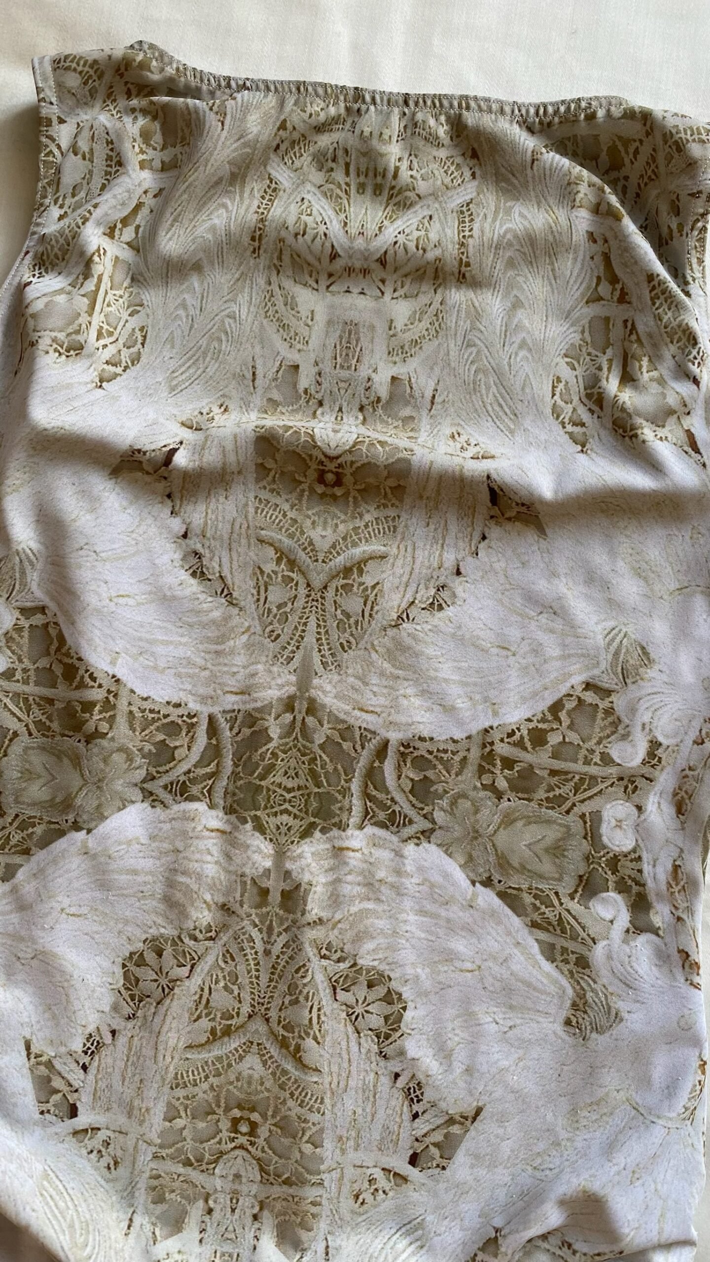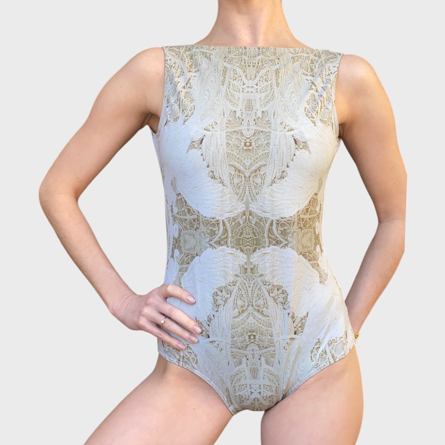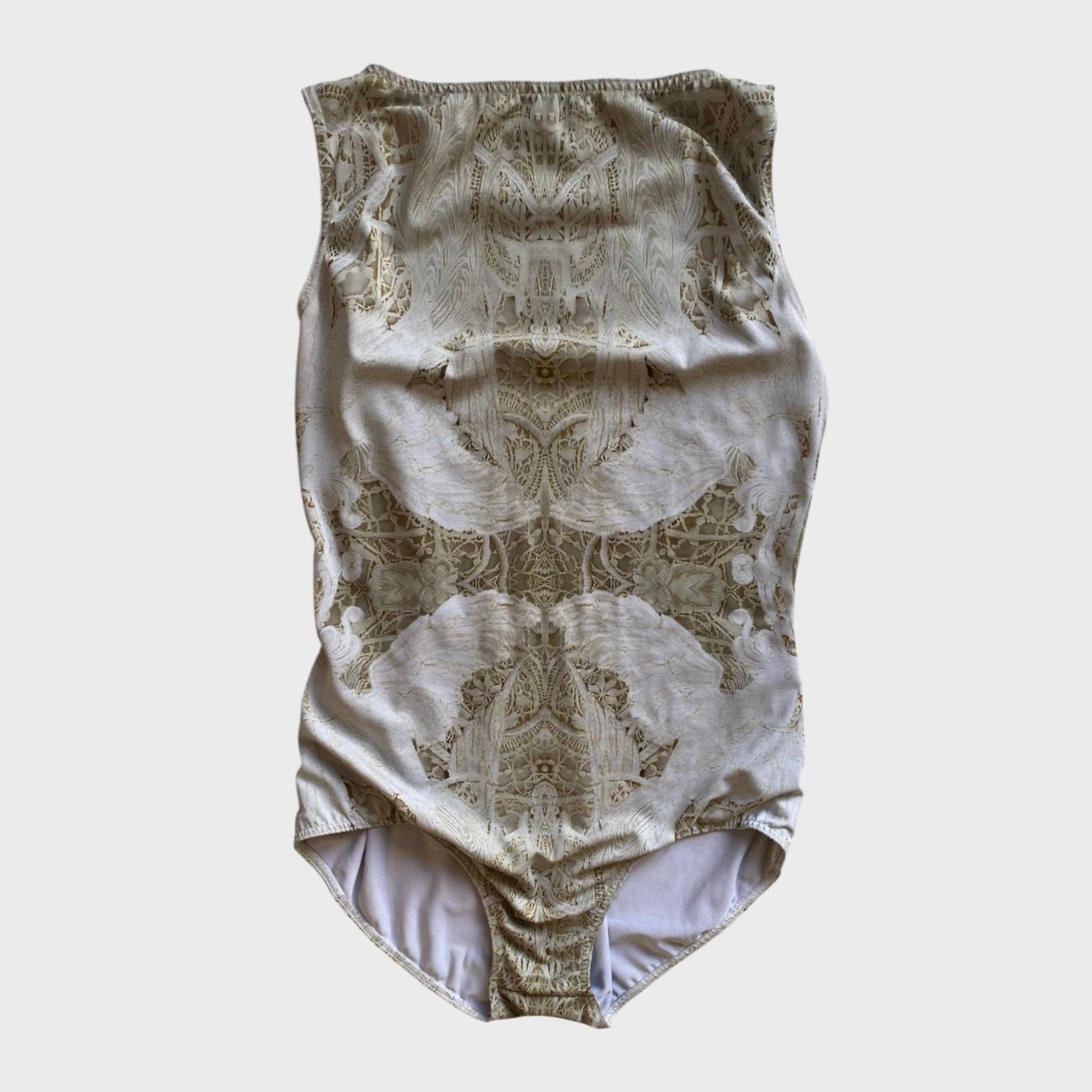 Maldire patterned leotard in off-white/beige shades. Size L, great condition.