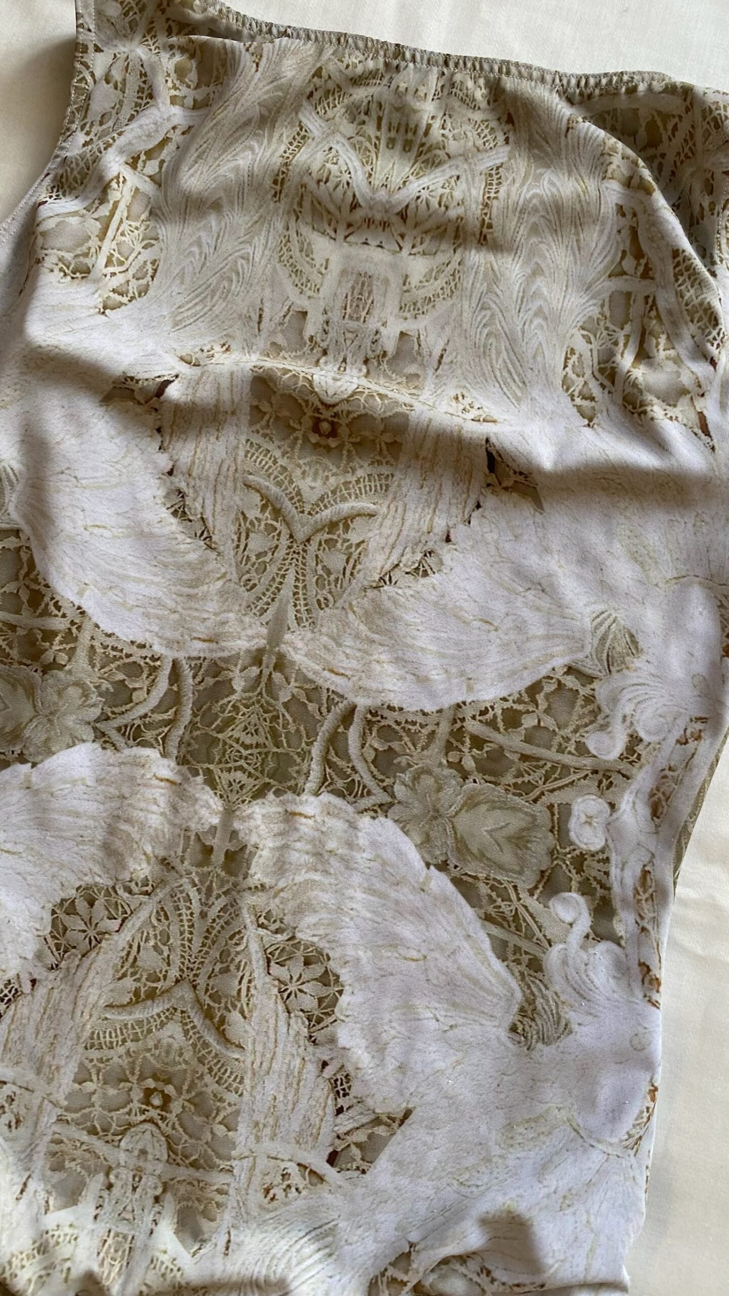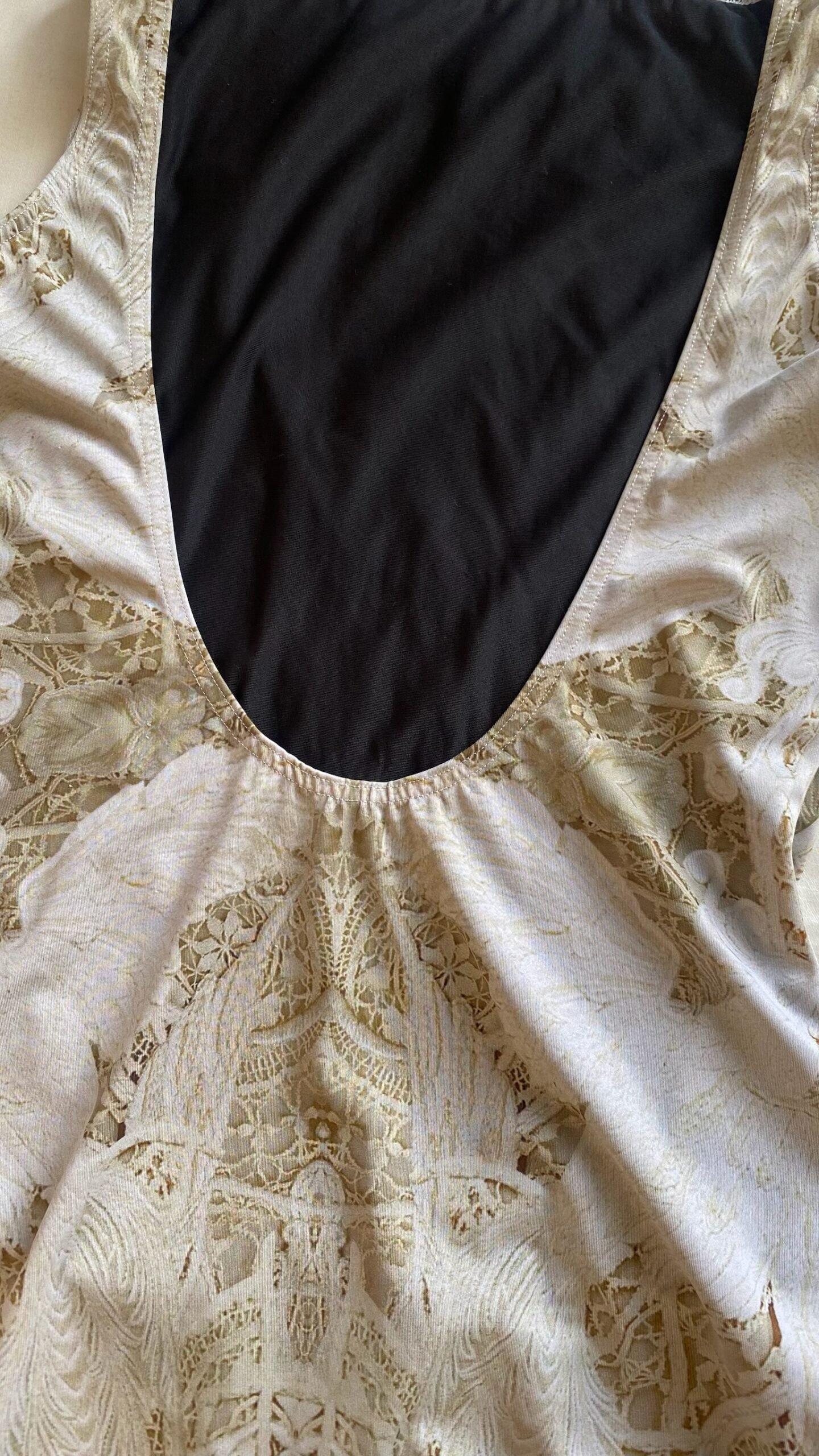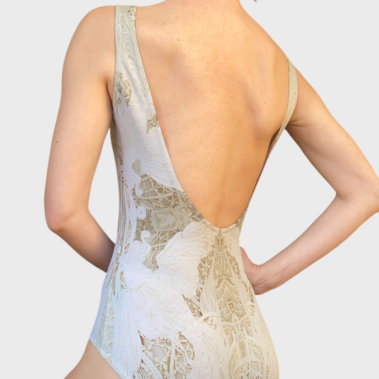 Maldire patterned leotard in off-white/beige shades. Size L, great condition.