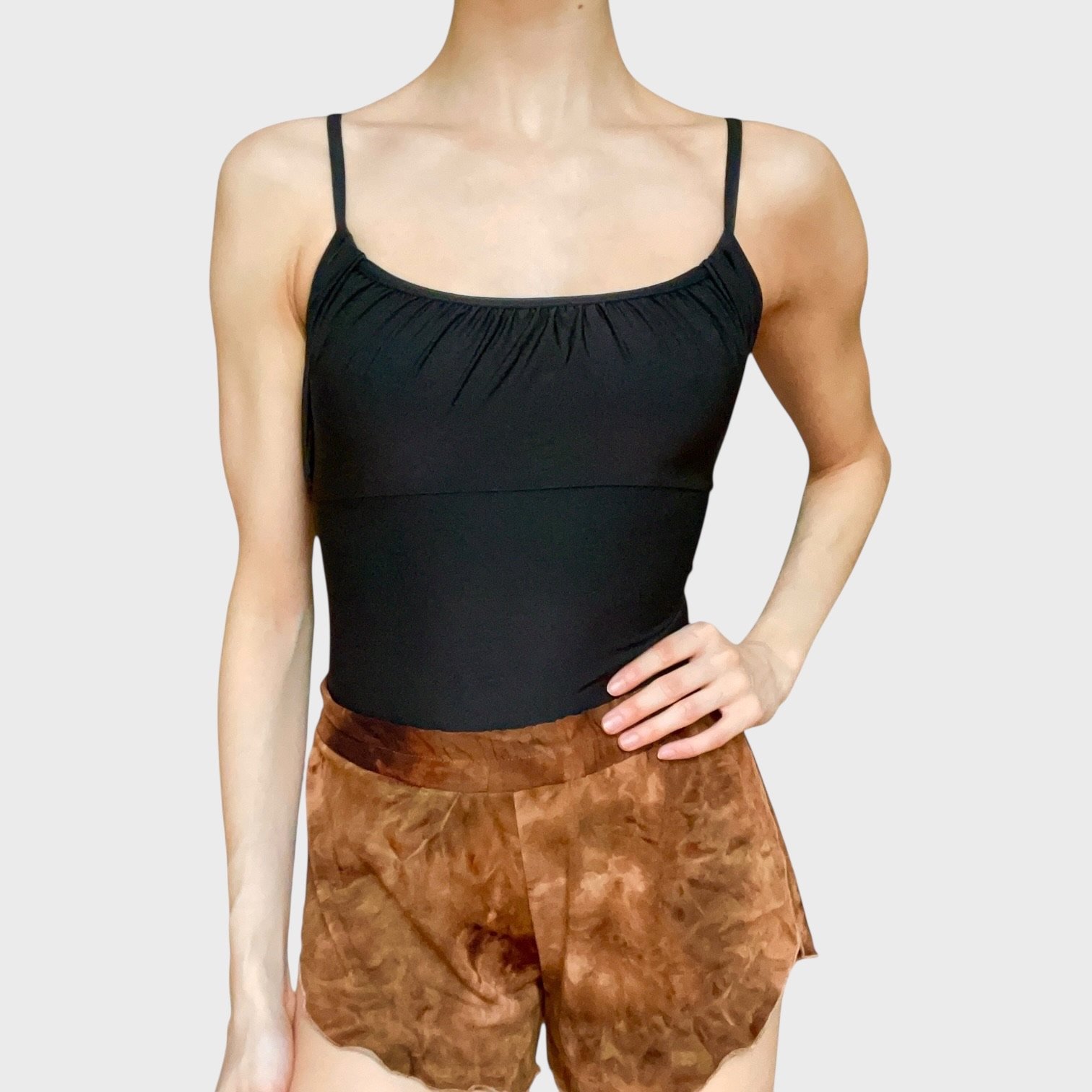 Mirella camisole leotard in shiny black. Size L, great condition.