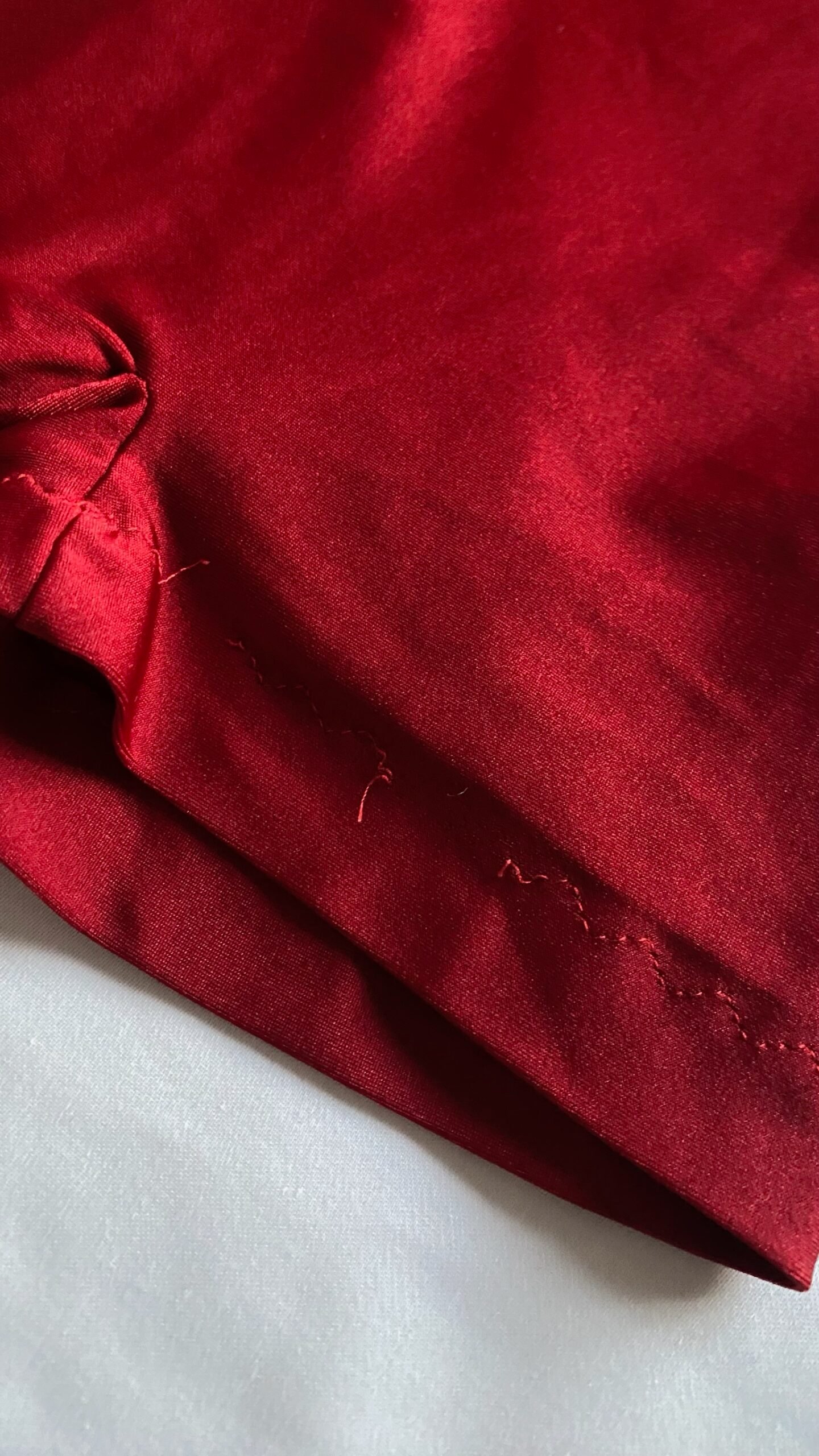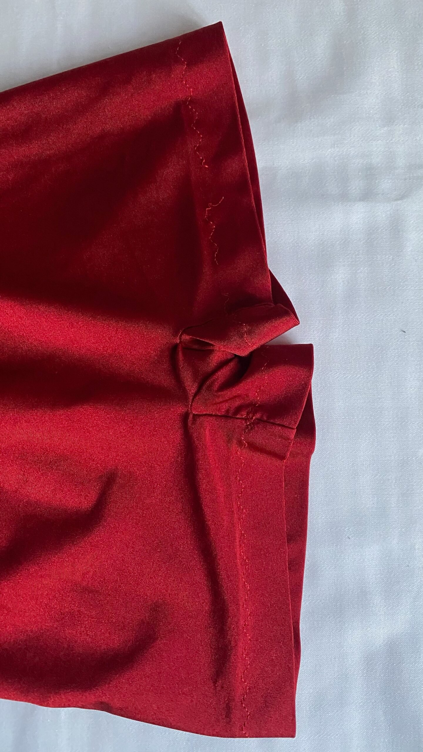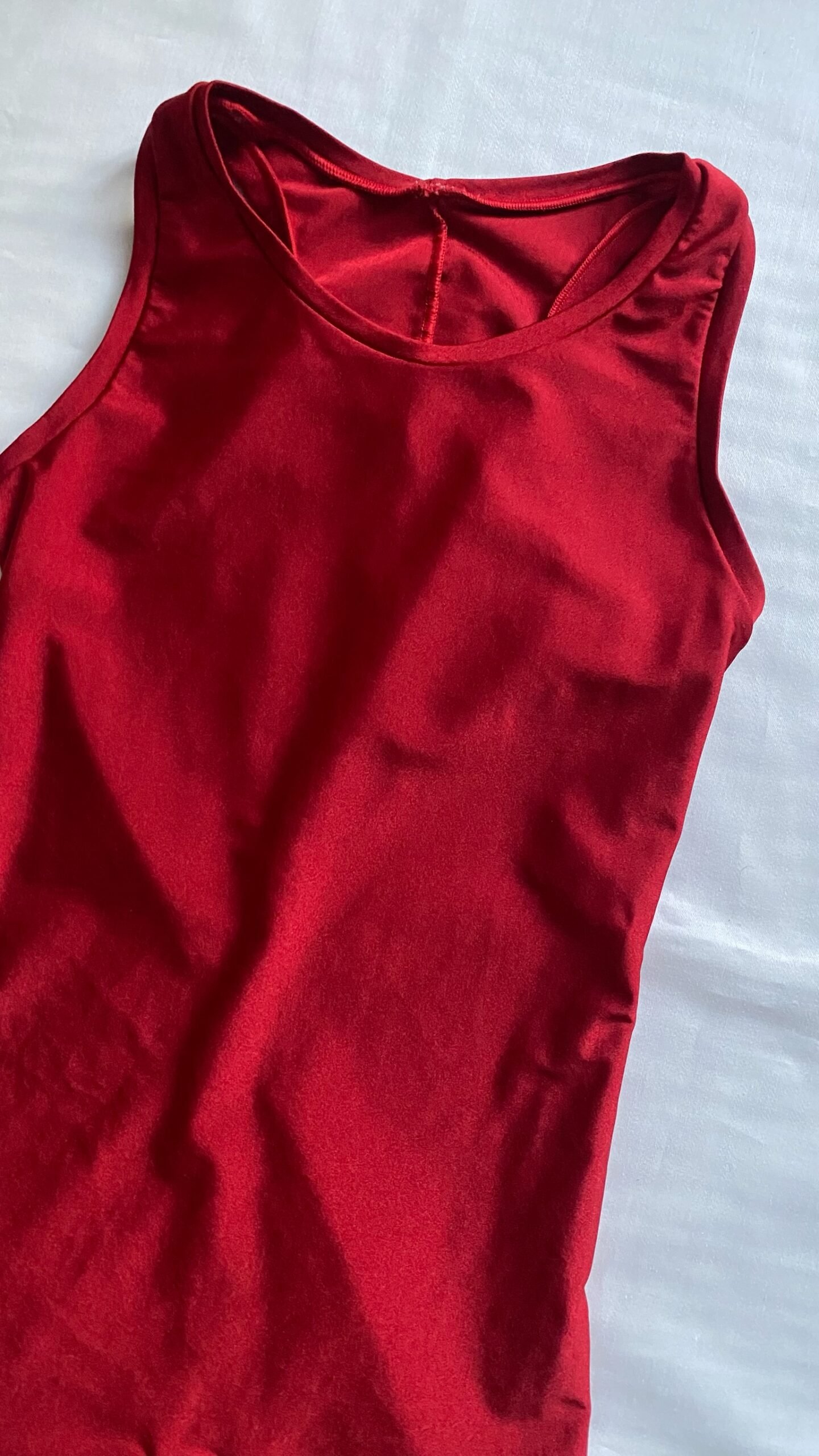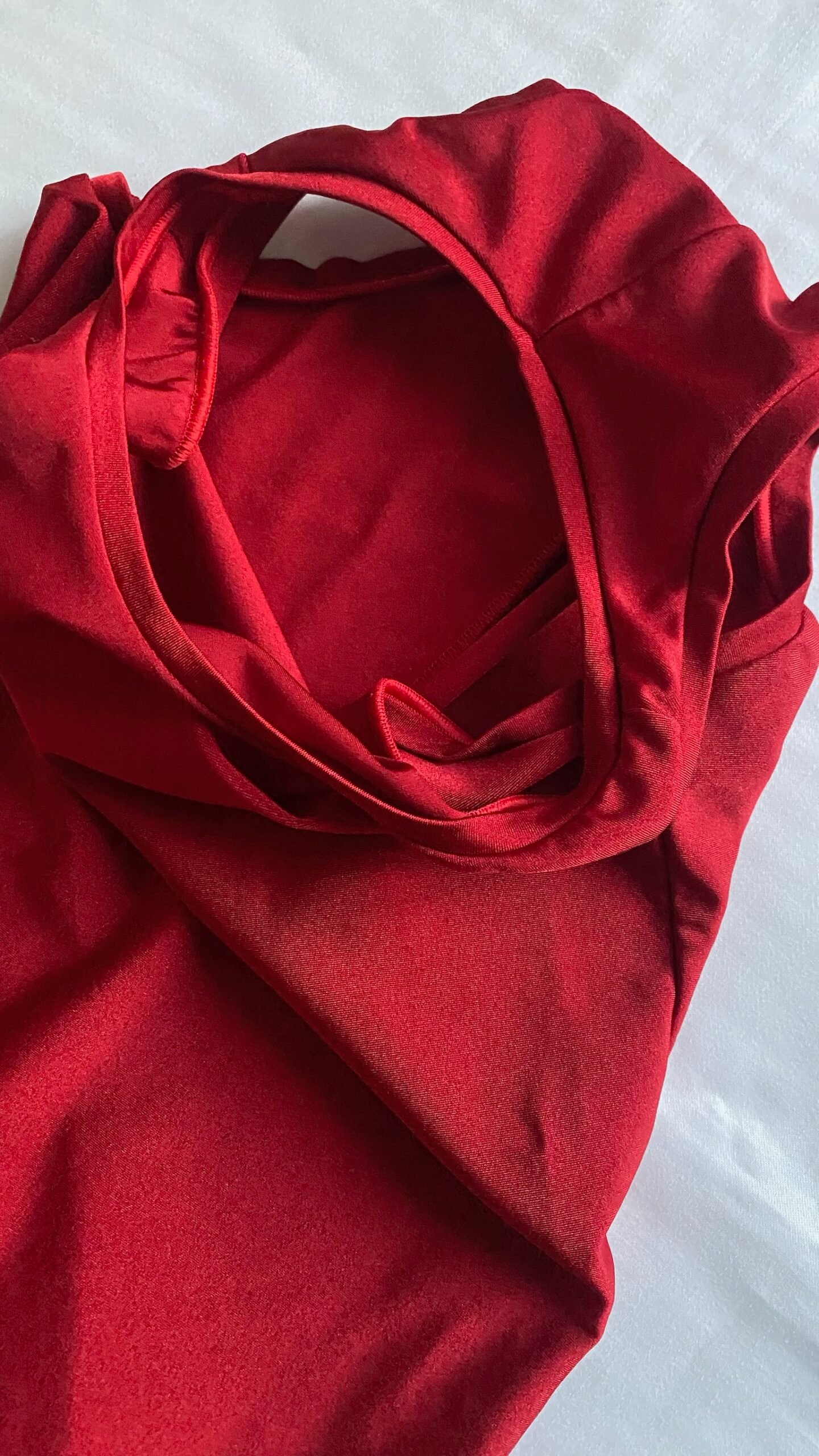 Red unisex biketard, brand unknown. Size men’s XS, women’s S, fair condition – small defect on the seam on one of the legs.
