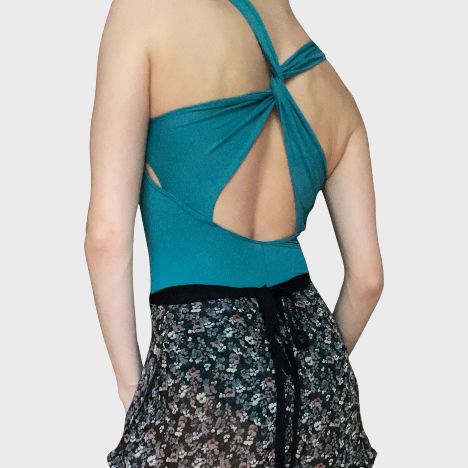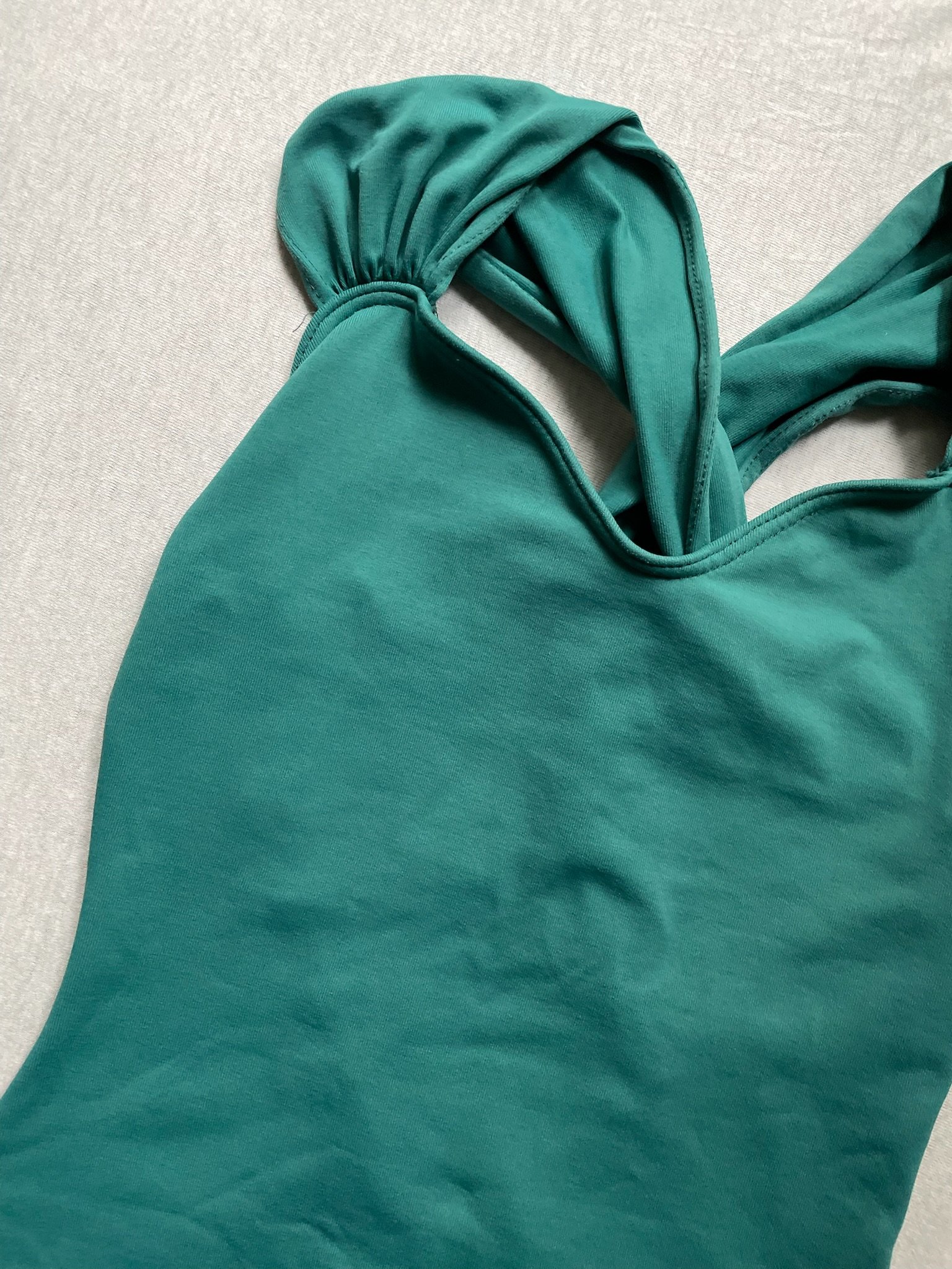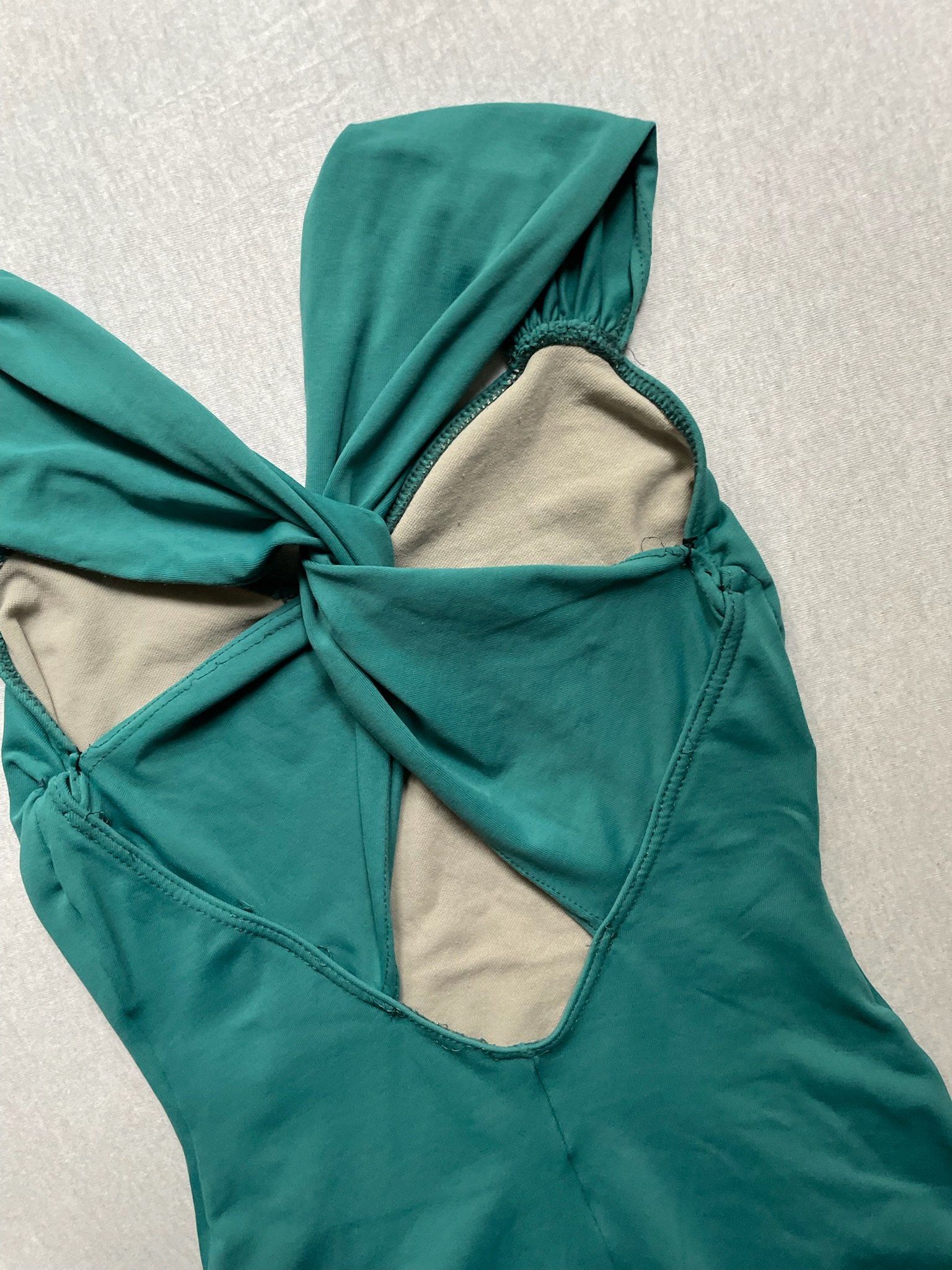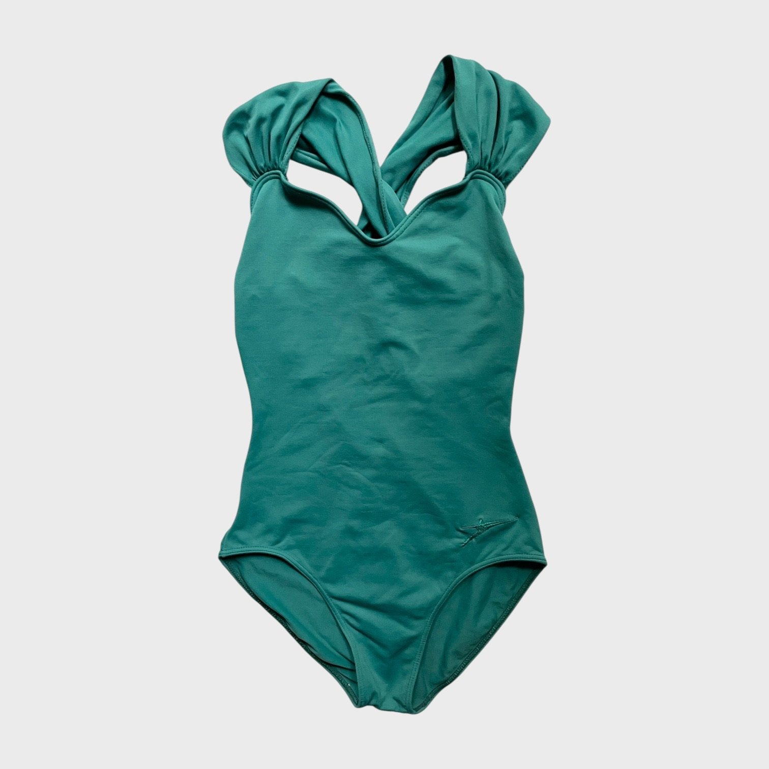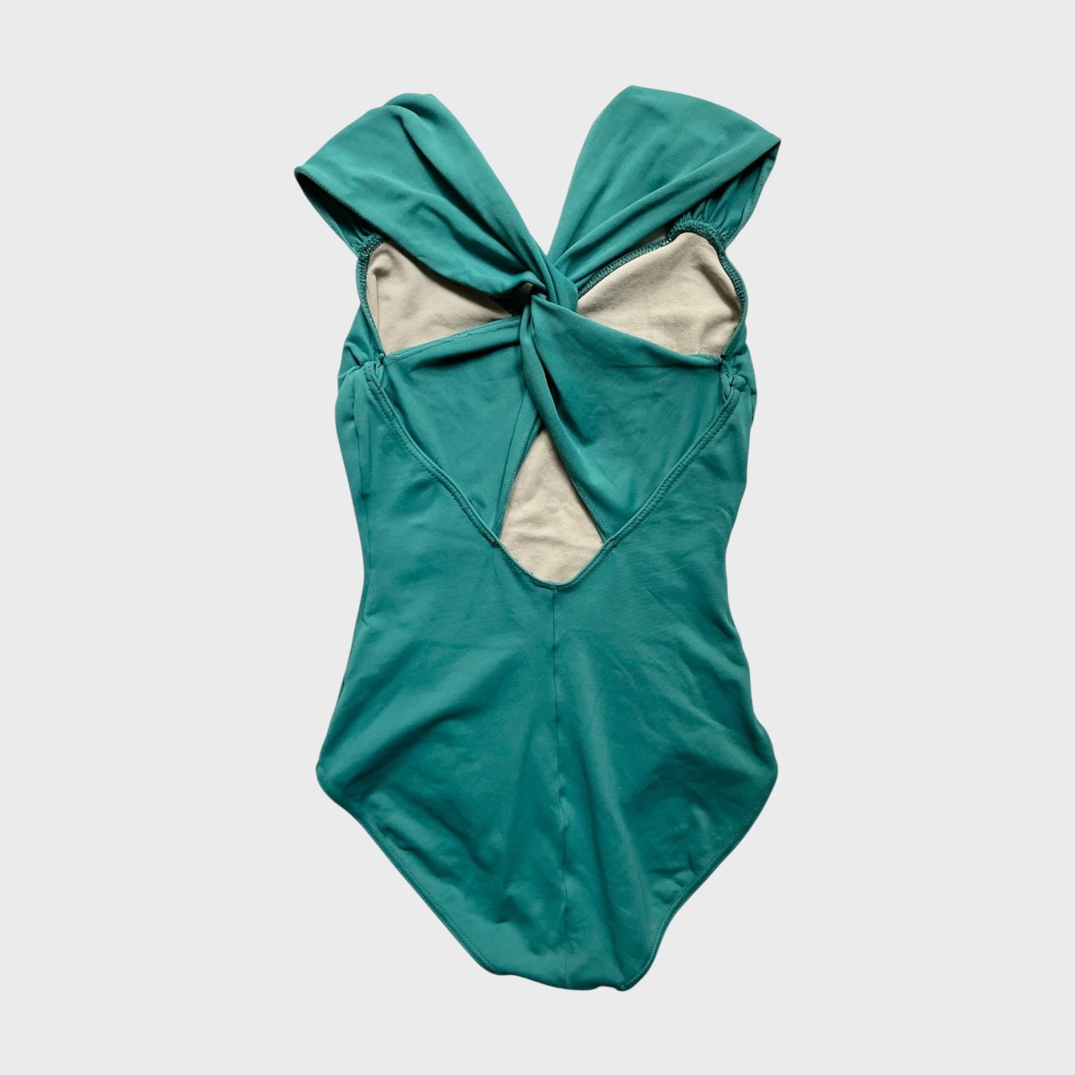So Danca leotard in teal. Size M, fair condition – damage around the seam and straps at the back.