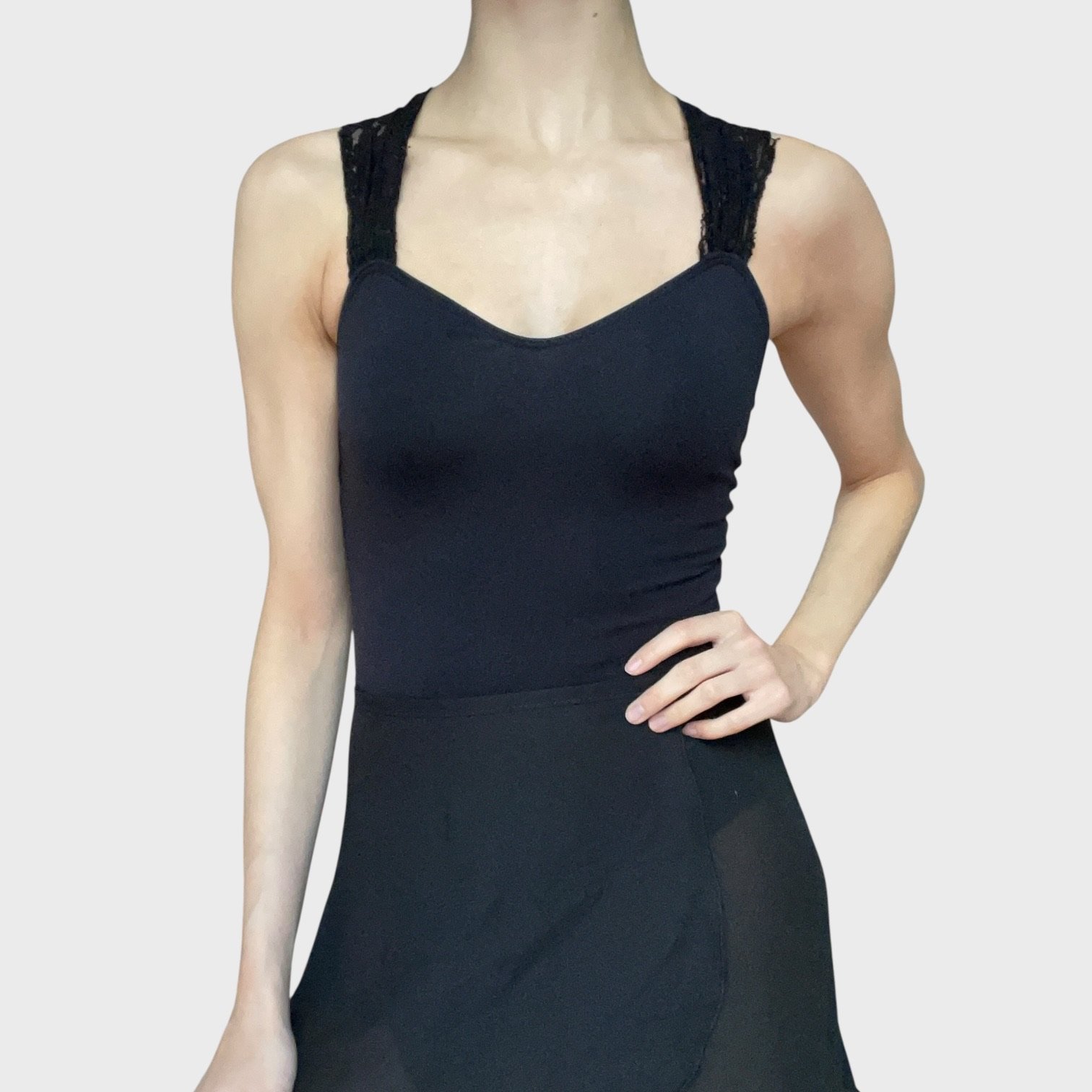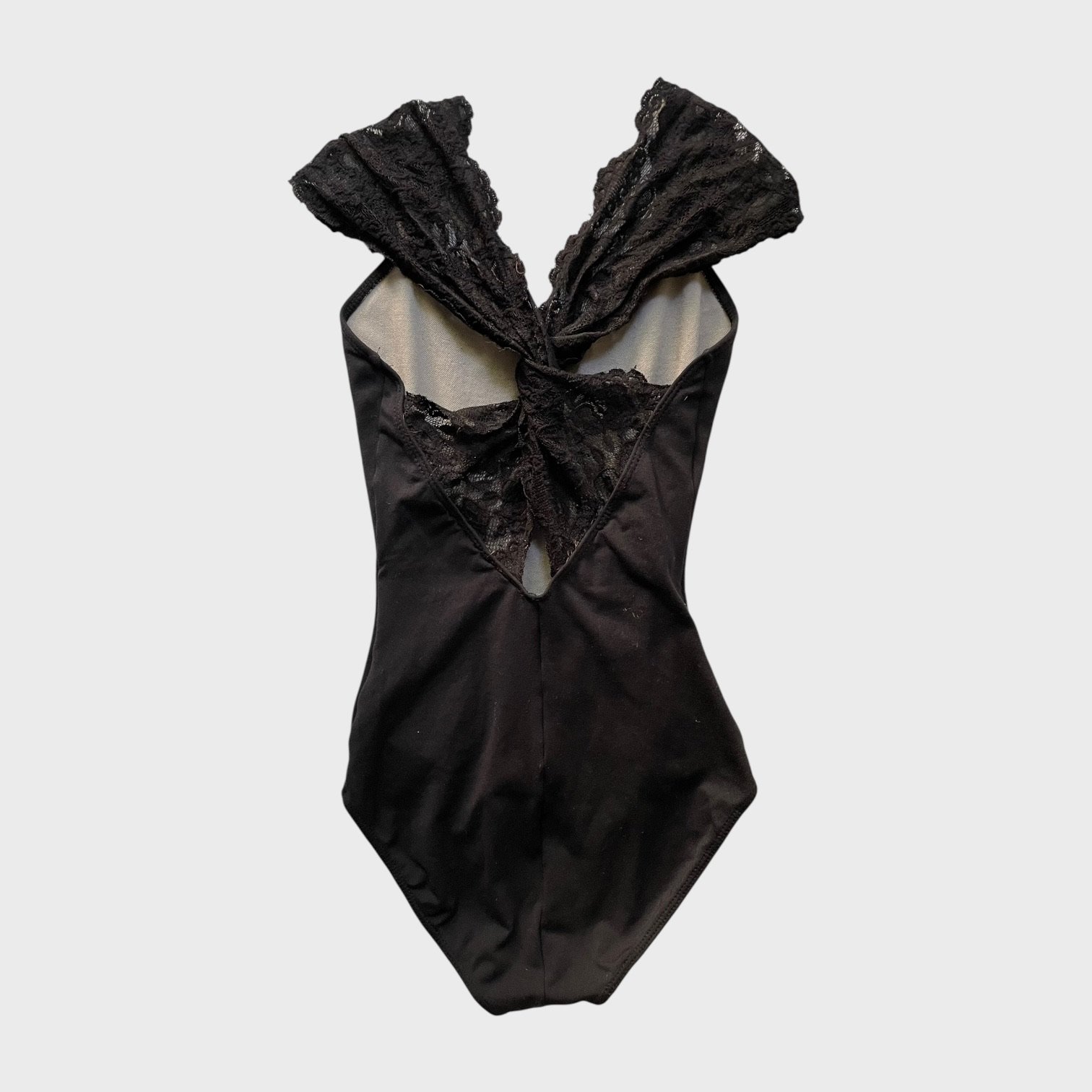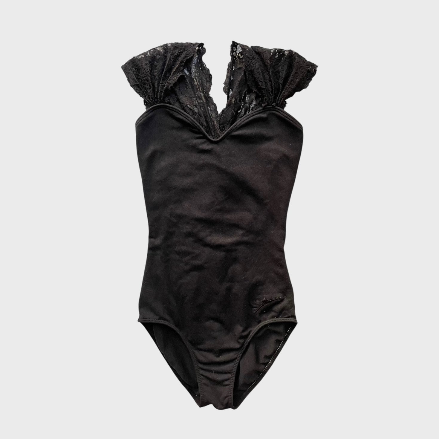 So Danca leotard in black with lace straps. Size S, fair condition.