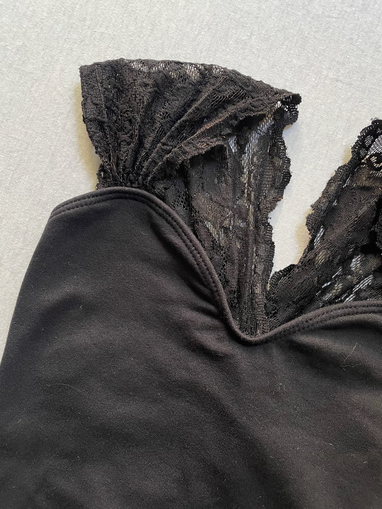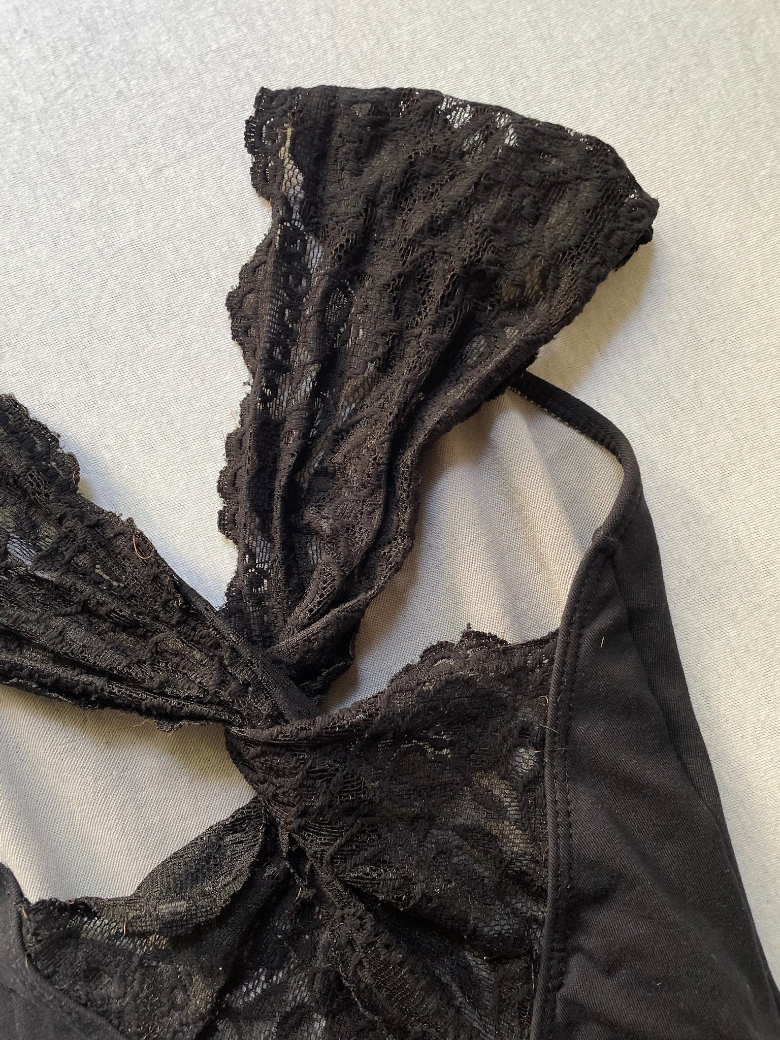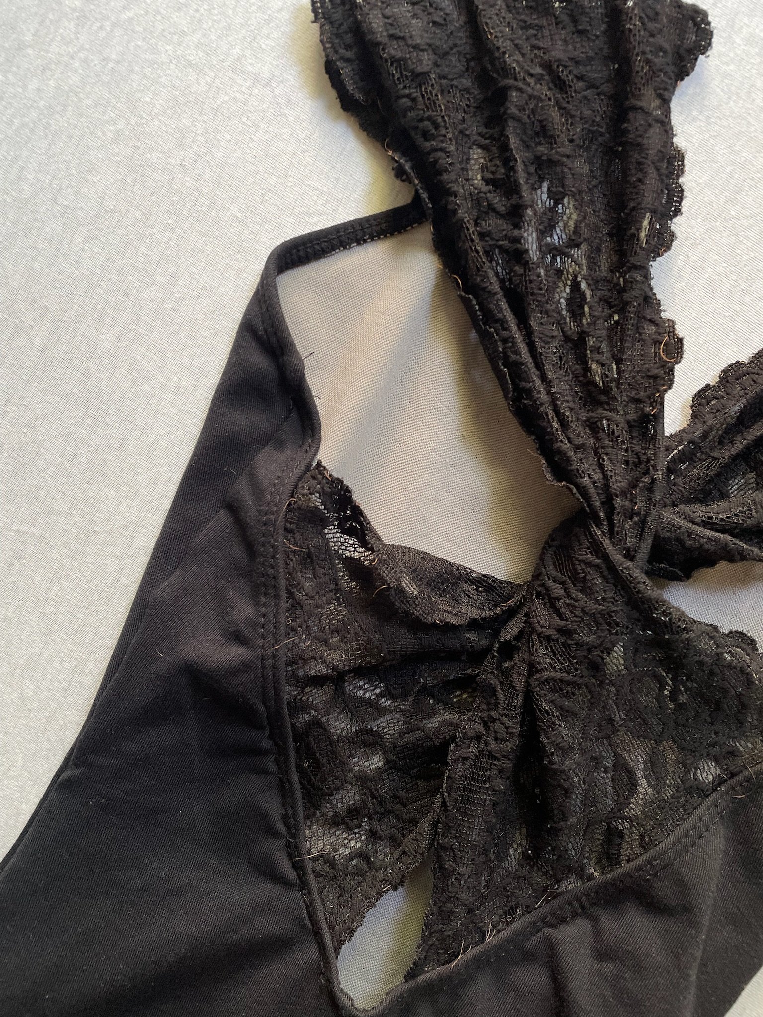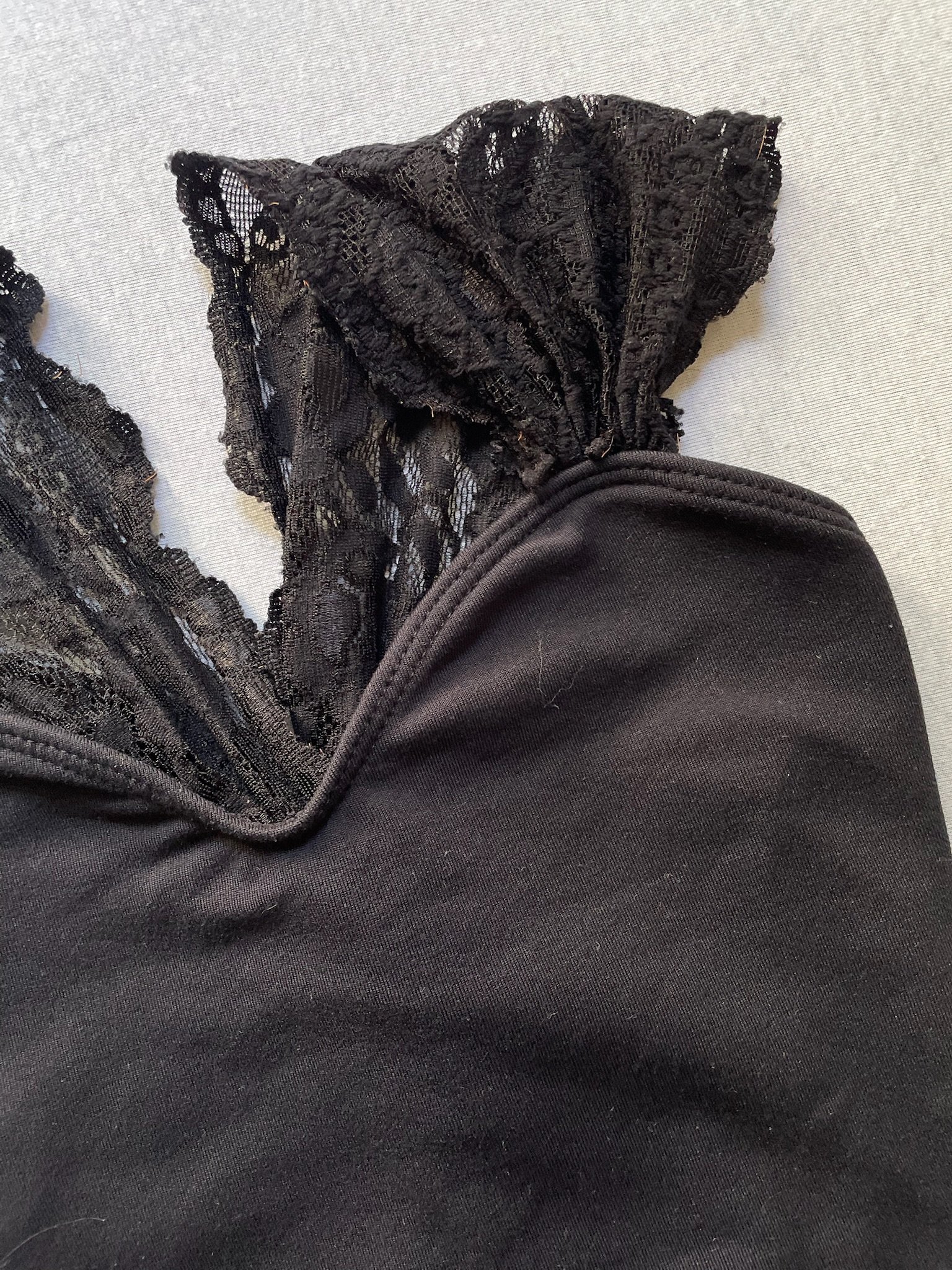 So Danca leotard in black with lace straps. Size S, fair condition.