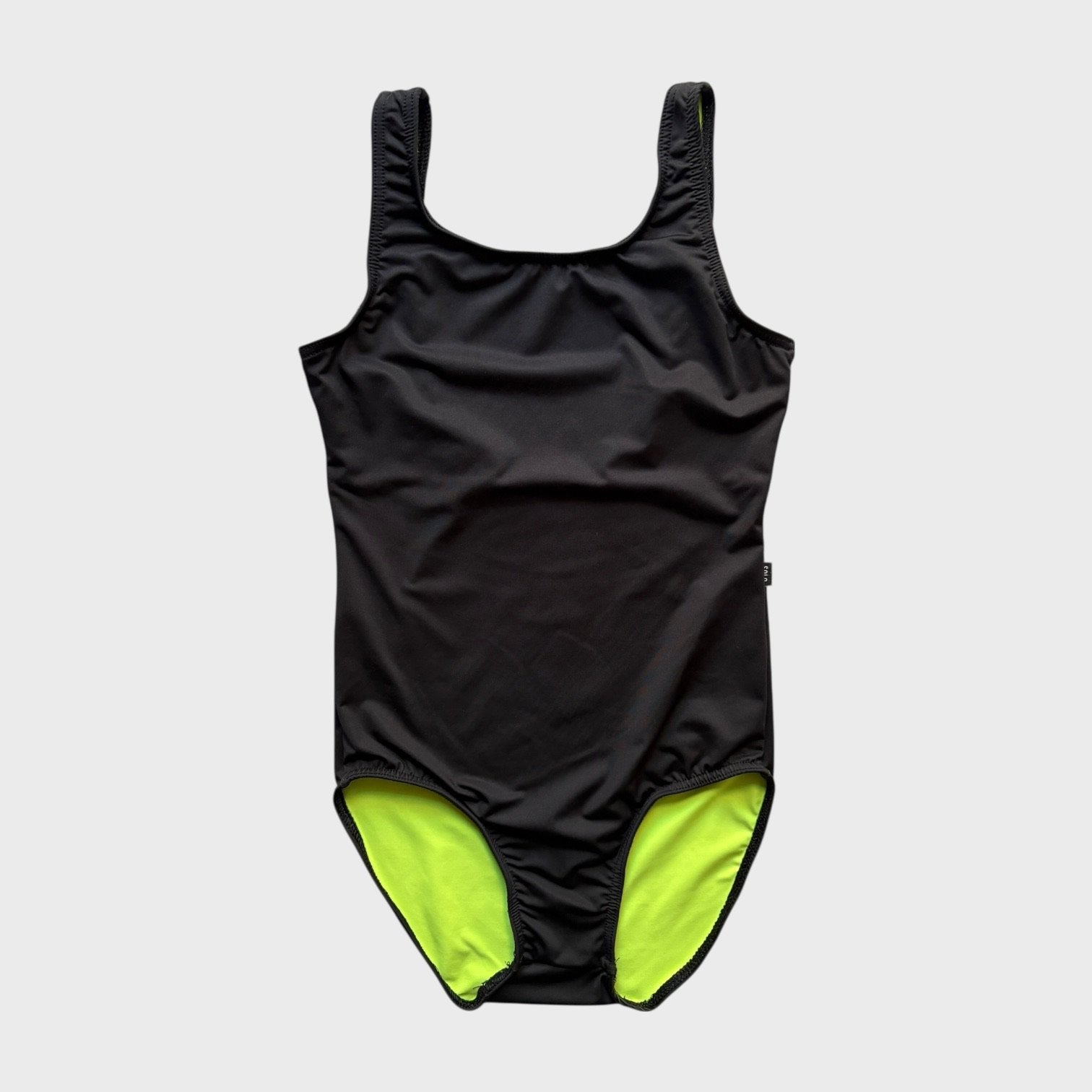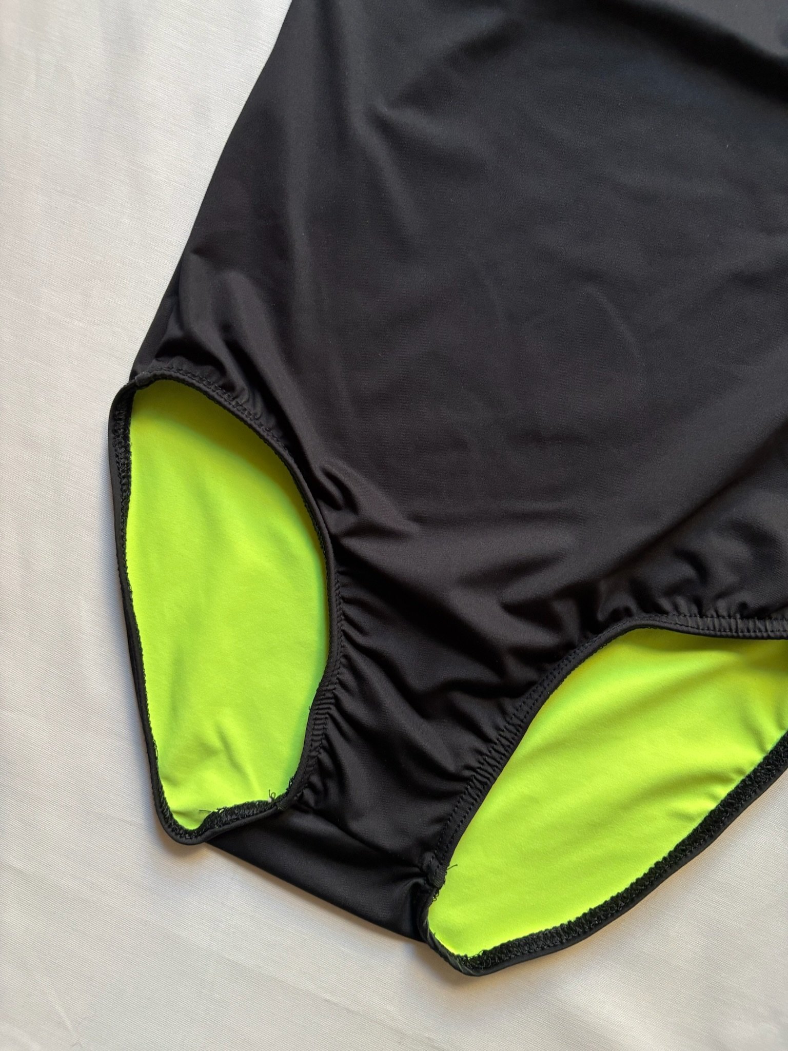 Solo Dancewear leotard in black with neon green undertone. Size S, great condition.