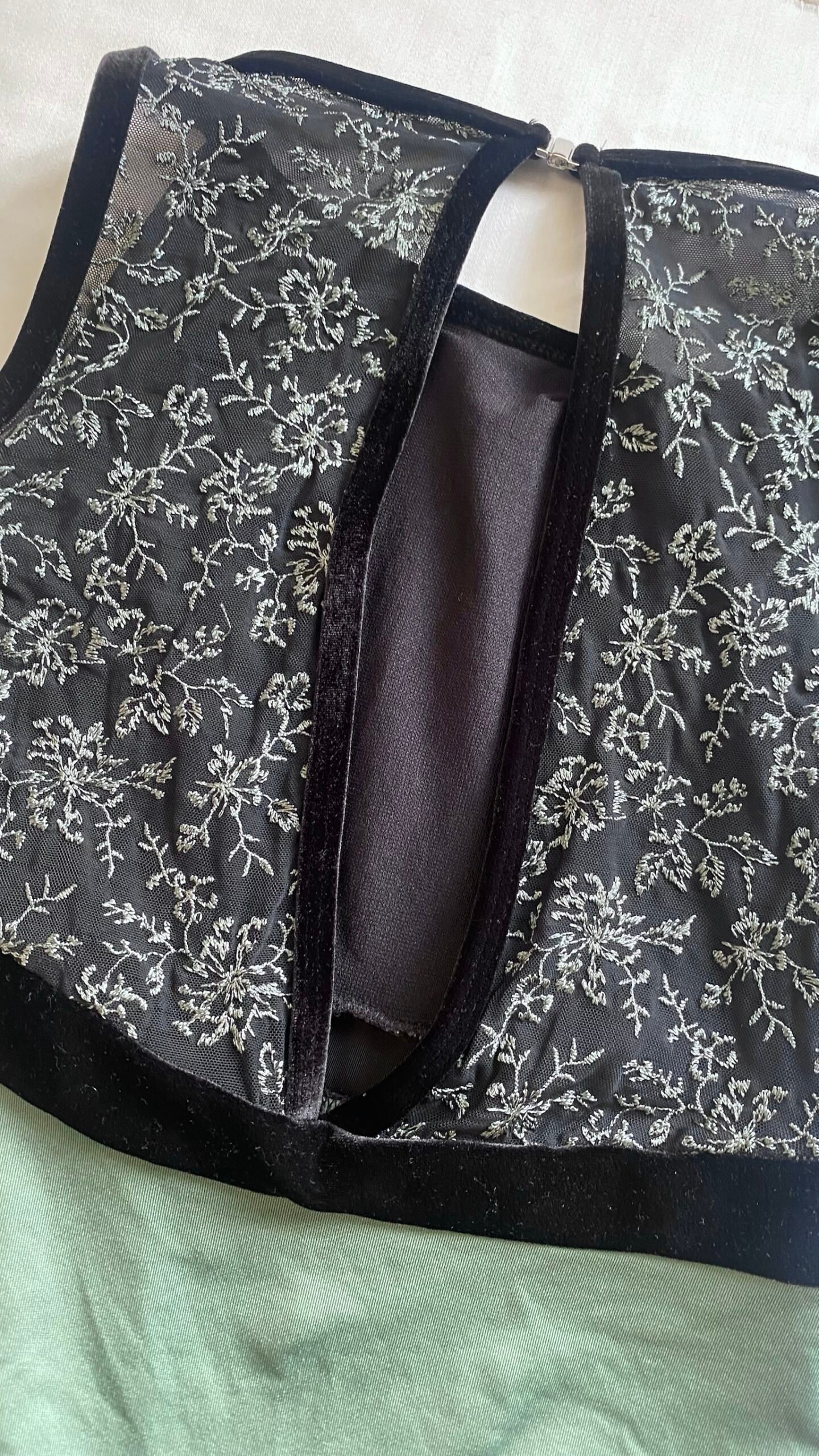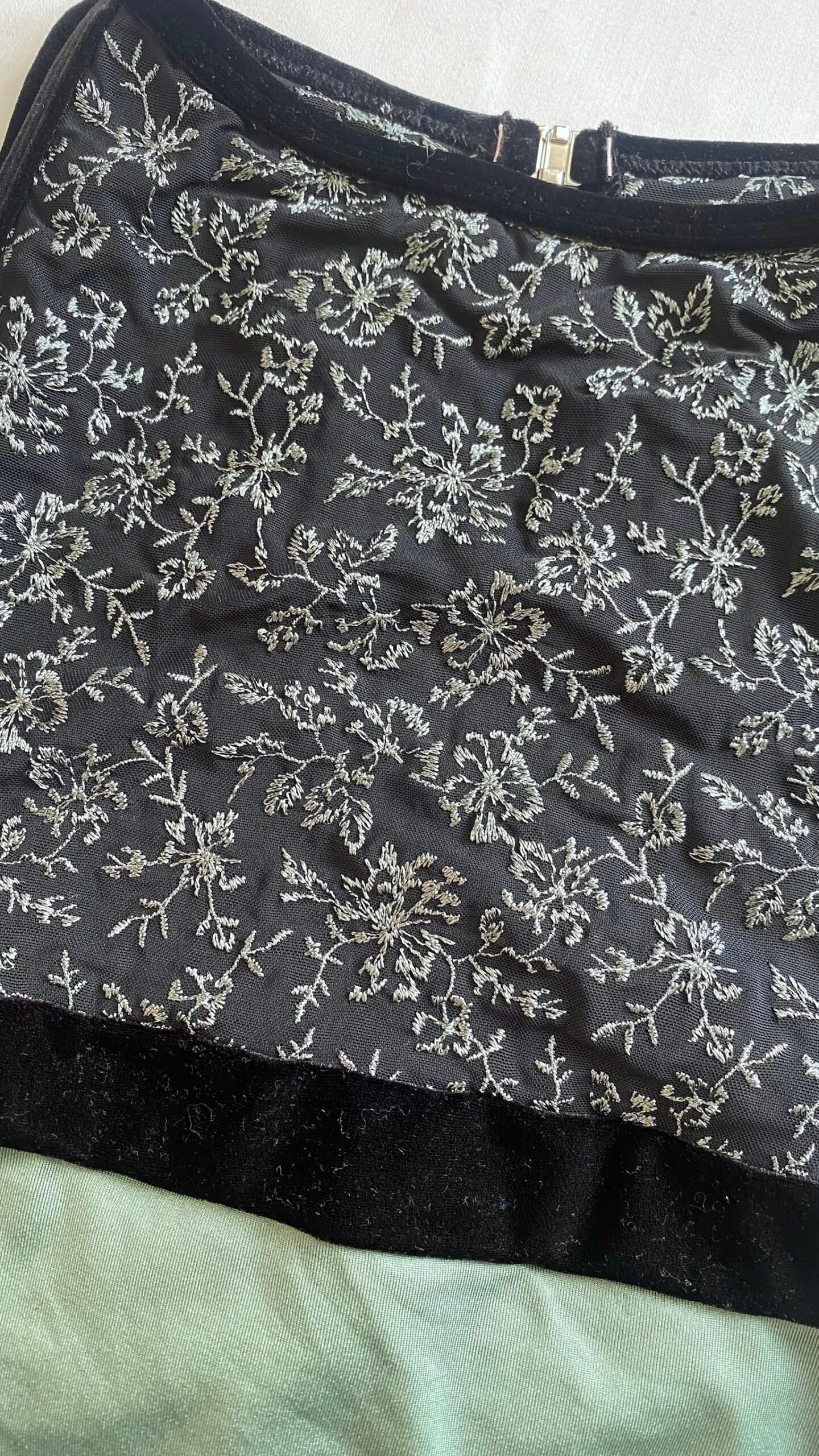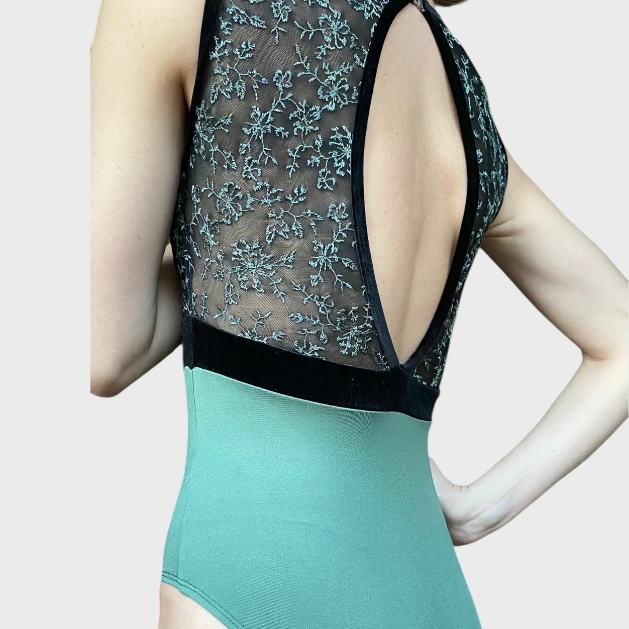 Suffolk leotard in green with embroidered mesh top and velvet details. Size XS, great condition.