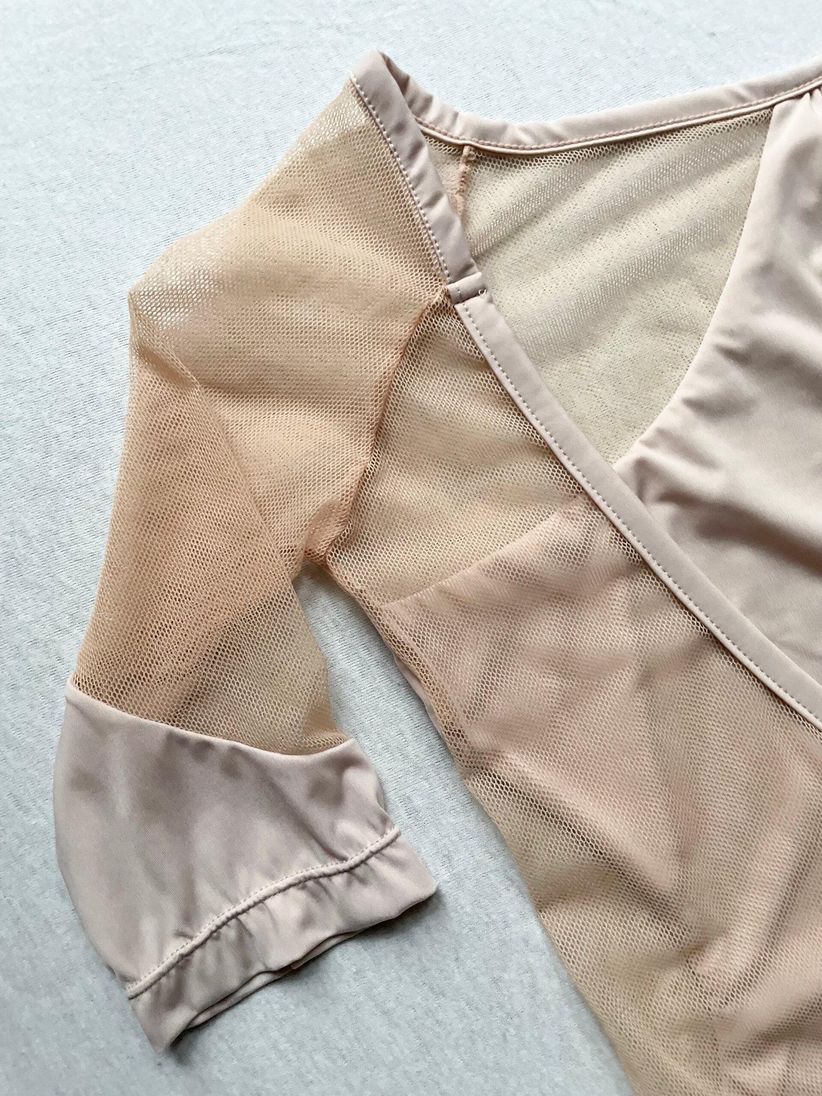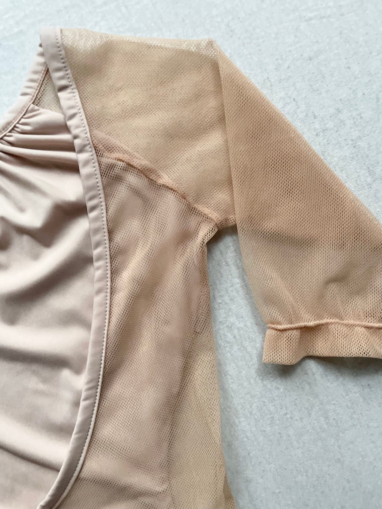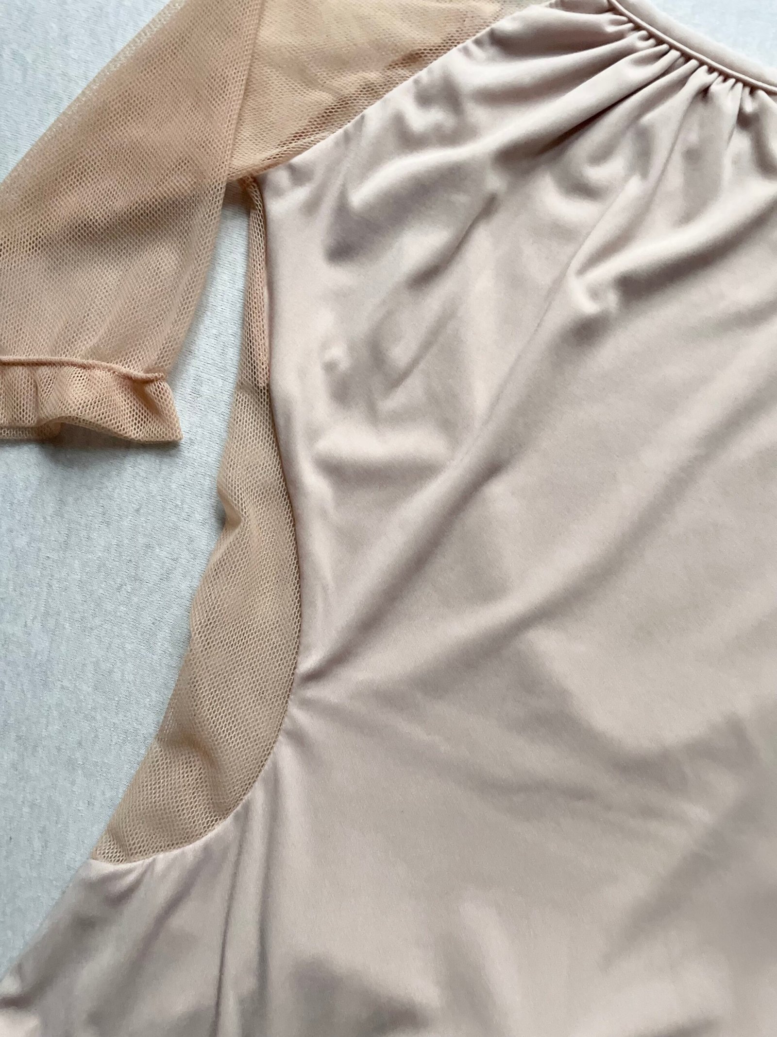 Taecho leotard in nude with mesh inserts and half sleeves. Size S (small fit), perfect condition.