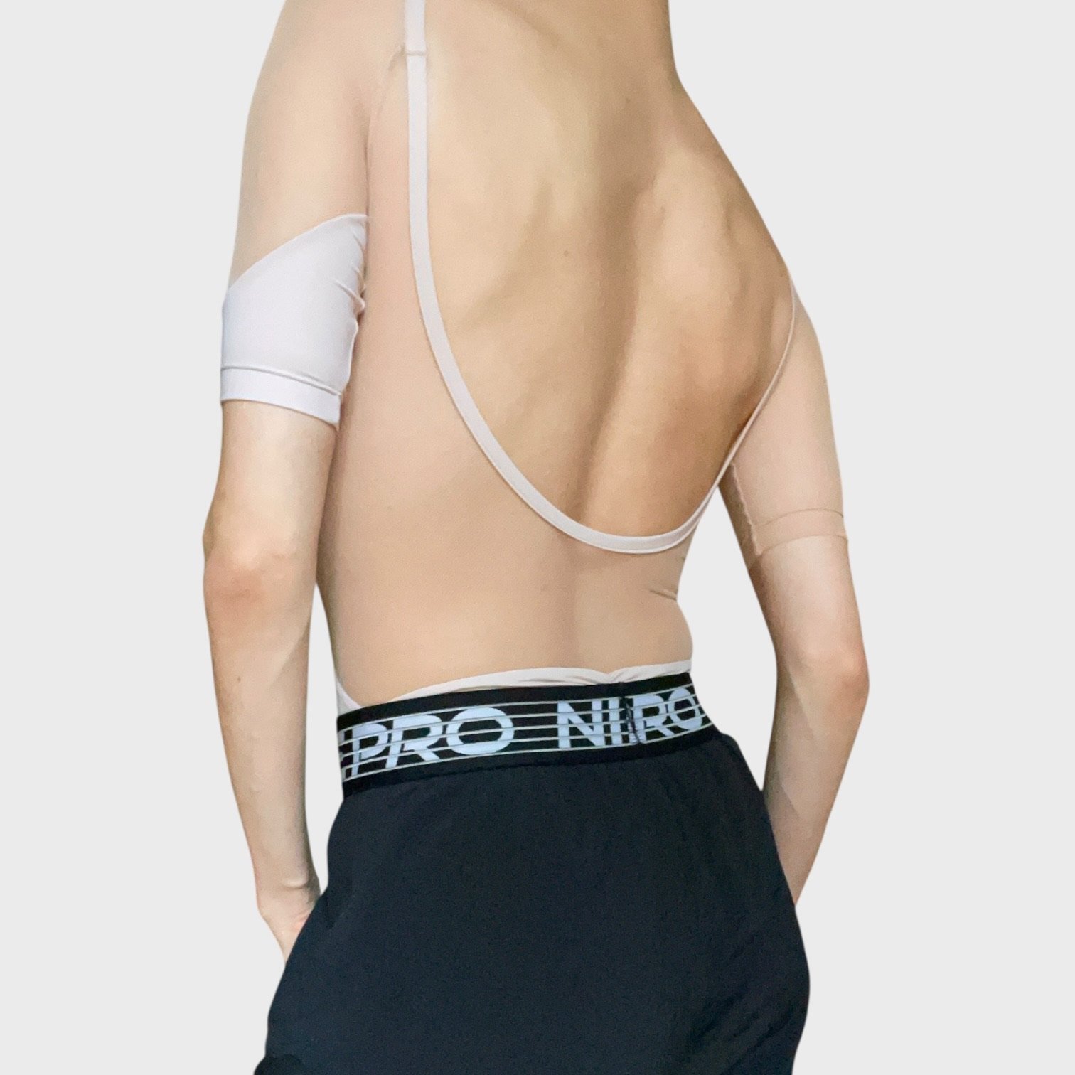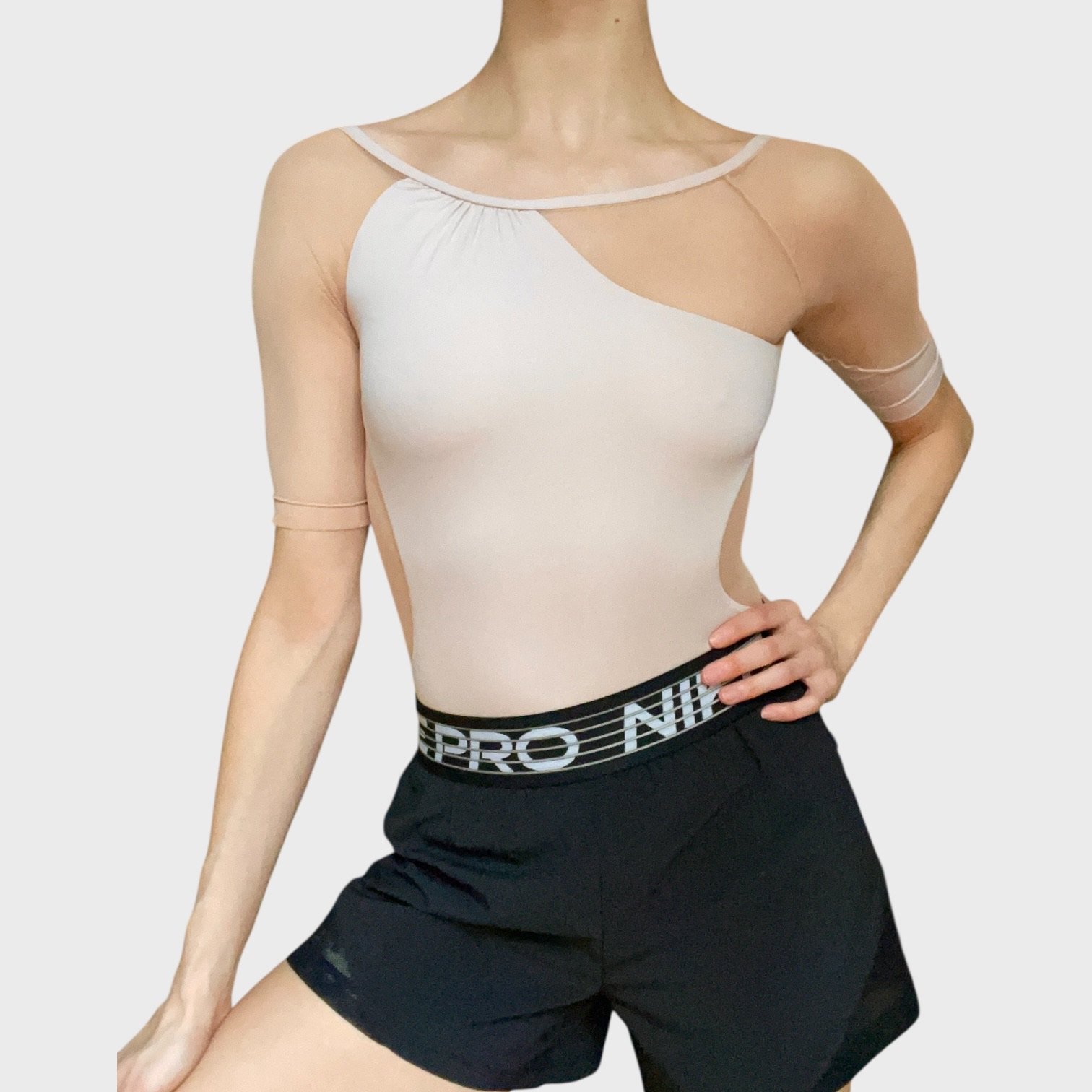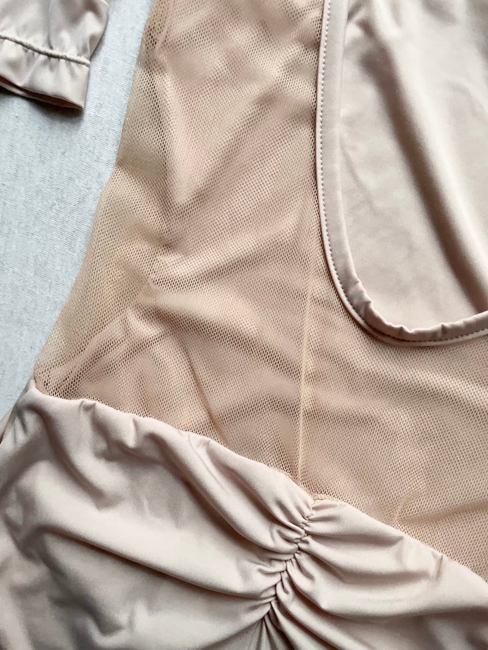 Taecho leotard in nude with mesh inserts and half sleeves. Size S (small fit), perfect condition.